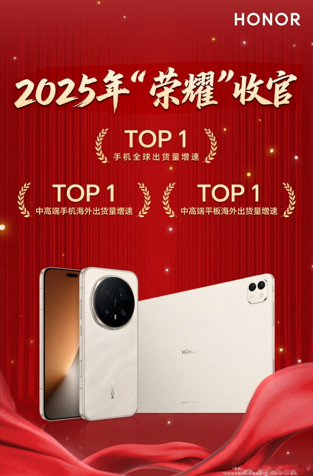 荣耀海外狂飙!2025年三大增速第一!据Omdia数据,荣耀手机2025年全球增速达11%,成为前十大厂商中出货量全球增速第一品牌。IDC数据显示,前三季度300美金以上手机高端及中高端档位、300-600美金平板中高端档位,荣耀均为海外出货增速第一。另外值得一提的是,2026年3月巴塞罗那MWC,全球首款「手机机器人」robot phone和Magic V6折叠屏手机即将亮相。荣耀阿尔法战略第二曲线布局已见端倪。荣耀