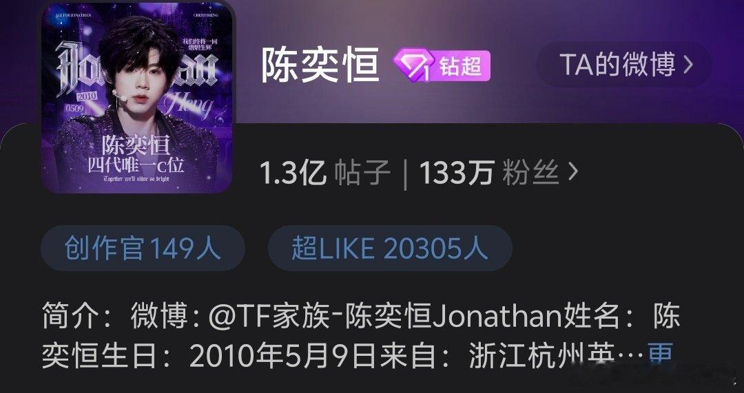 陈奕恒超话超like破20000,四代第一位破20000的。