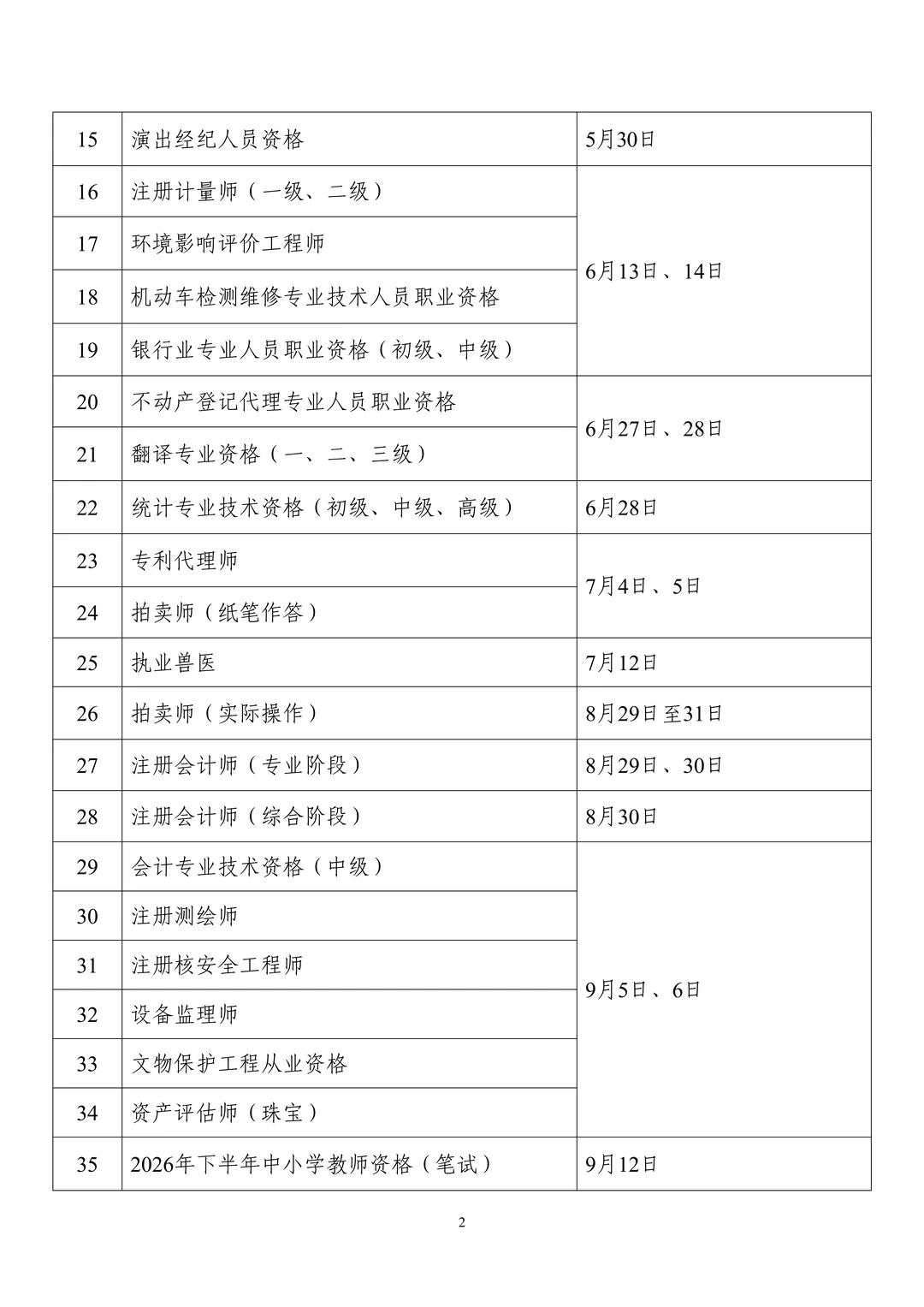 2026年度专业技术人员职业资格考试时间