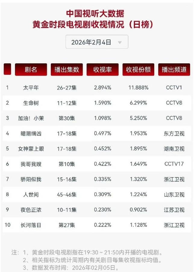 杨紫《生命树》数据应该起不来了! 收视率又创新低了,4日CVB收视率跌到1.59%了,今天收视率又跌了,这样下去平均收视率可能都不如《不期而遇的生活》,云合播放量也连续三天横盘了,再加上白鹿新剧播出,新剧又是白鹿舒适区,竞争力还挺大的,《生命树》可能云合等不了顶了。