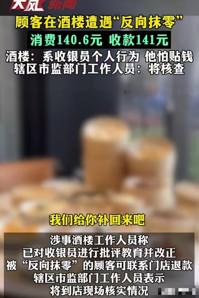 🌙广东湛江,男子和朋友一起去吃早茶,三个人吃了141元,饭后男子付了钱,可等他回家一看,发现他遭到“反向抹零”,原本应收140.6元,对方却收了他141元! 事发当天是周末,吴先生休息,就约了两个朋友,去了市区一家开了二十多年的老牌早茶店——金紫荆酒楼。 三人到店后,找了个靠窗的位置坐下,按照往常的习惯,点了一桌子点心,有莲蓉包、牛肉粥、虾饺皇、凤爪,还有几碟小菜和三壶茶,都是他们平时爱吃的品类。全程吃得十分尽兴,不知不觉就坐了两个多小时,直到临近中午三人才准备结账离开。 吴先生主动起身去收银台结账,收银员拿着账单,笑着对他说“先生,一共141元”。吴先生也没多想,觉得三人吃这么多点心,这个价格很合理,加上平时对这家店的信任,就直接用手机扫码付了钱,收银员递给他一张小票,他随手揣进了口袋就和朋友一起离开了酒楼。 回到家后,吴先生整理口袋时,无意间掏出了那张早茶小票,闲着无聊就拿起来看了一眼,可这一看,却让他愣住了。 小票上清晰地显示着,三人消费的各项点心、茶水价格加起来,应收合计是140.6元,下方还有一行“优惠合计-0.4元”,最后预计实收竟然标注的是141元,相当于商家不仅没抹掉零头,还多收了他4毛钱。 吴先生一开始以为是自己看错了,反复看了好几遍小票,确认应收金额确实是140.6元,而自己实际支付的是141元,这才意识到,自己遭遇了“反向抹零”。他心里有些不舒服,倒不是差这4毛钱,而是觉得商家这种做法不妥,哪怕是几毛钱也应该明明白白收费。 他后来和朋友说起这件事,朋友也十分意外,还说自己之前在这家店消费时,好像也遇到过类似的情况,只是当时没仔细看小票,事后就忘了。 吴先生越想越觉得不对劲,就把自己的小票拍了照,发到了网上,本意是想吐槽一下这件事,没想到,帖子很快就引发了网友们的广泛关注和讨论。 有网友留言说,自己也遇到过同样的“反向抹零”,消费几十块钱,被多收几毛钱,一开始觉得无所谓,看到吴先生的经历才意识到,这不是钱多少的问题,而是商家的诚信问题;还有网友表示,之前在厦门一家餐饮店消费,189.5元被收了190元,投诉后商家被市场监管部门罚款,才知道这种行为其实是违法的。 随着热度越来越高,这家金紫荆酒楼的负责人也注意到了此事,很快就公开作出了回应。负责人表示,出现这种情况,主要是因为店里使用的是旧收银系统,没有及时升级,系统默认设置的是“四舍五入”收款,加上员工培训不到位,没有及时发现并改正这个问题,并非故意要多收顾客的钱。 负责人还透露,她是上个月才来这家店做店长的,也是看到网友的投诉,才了解到店里存在这样的问题。这家酒楼已经开店26年,搬到现在的位置也有8年了,一直以来都很注重口碑,这次出现“反向抹零”,确实是店里的疏忽。 吴先生表示,他后来看到了店家的回应,也收到了退还的4毛钱,对于店家的处理态度,他还是比较满意的。他说,自己之所以把这件事发到网上,不是为了要回这4毛钱,而是希望商家能重视这个问题,规范自己的收费行为,也提醒更多消费者,平时消费后一定要仔细查看小票,避免被“反向抹零”。 如今,越来越多的人习惯用手机扫码支付,很少有人会仔细核对消费小票,这也让一些商家有了“反向抹零”的可乘之机。很多人觉得,几毛钱微不足道,不值得较真,可正是这种“无所谓”的心态,让一些商家的不良行为逐渐蔓延。 一顿140.6元的早茶,被多收4毛钱,看似是一件小事,却牵扯出商家的诚信与合规问题。“反向抹零”从来都不是几毛钱的小事,而是关乎消费者知情权和合法权益的大事。 你觉得商家的“反向抹零”是疏忽还是故意为之?如果你遇到吴先生这样的情况,会选择算了,还是会向商家维权、向监管部门投诉?欢迎在评论区留下你的观点。