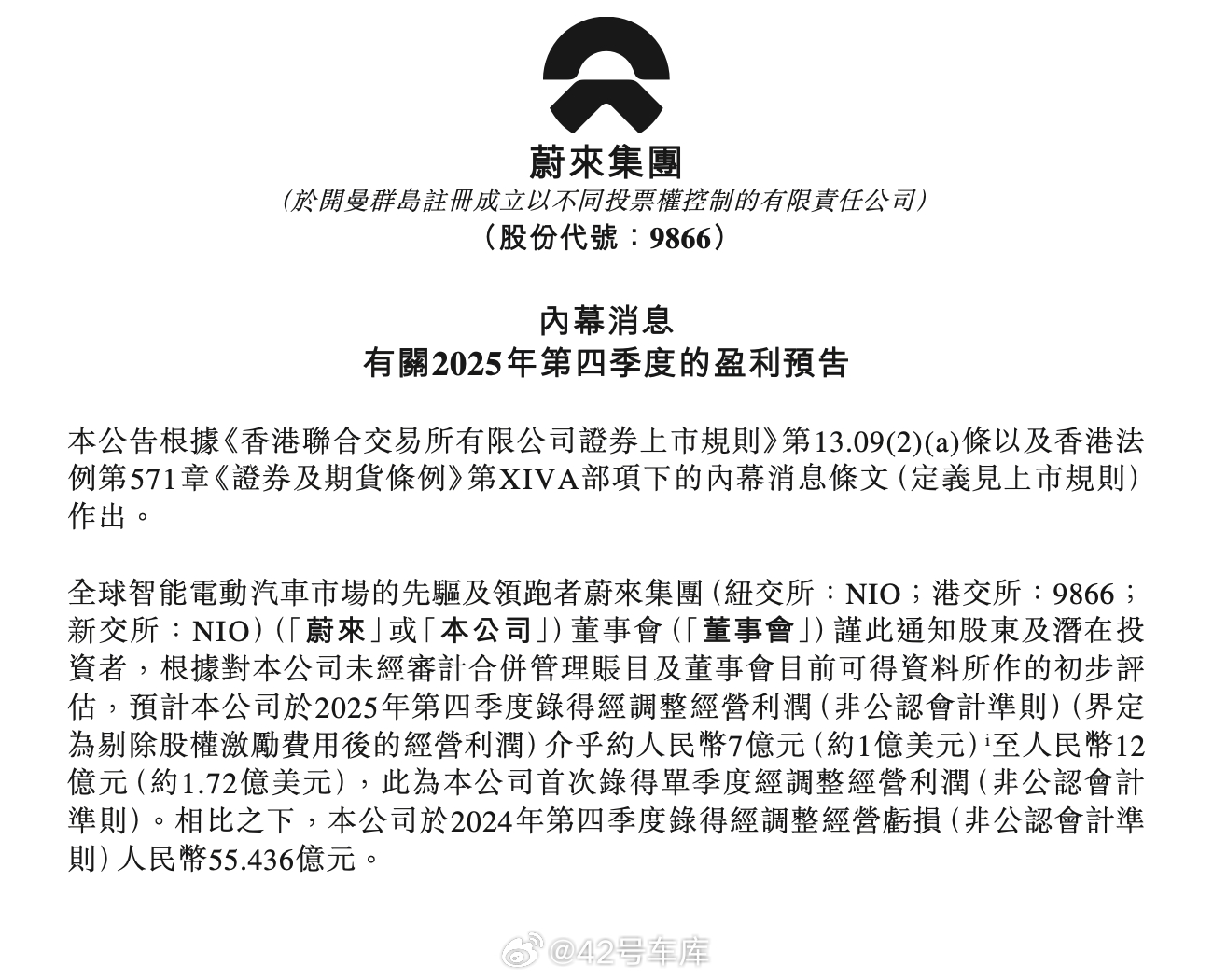 蔚来「史诗级」突破:2025 年四季度盈利!!