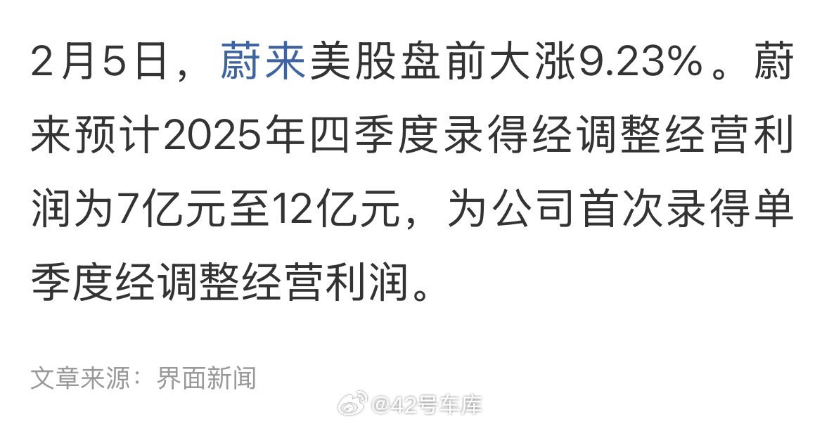 蔚来「史诗级」突破:2025 年四季度盈利!!蔚来预计单季度经调整经营利润达到