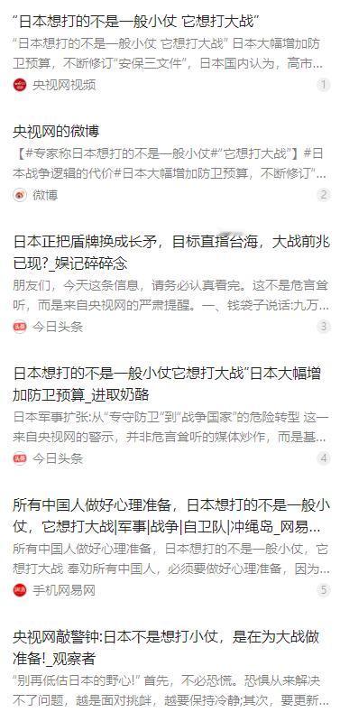 奉劝所有中国人,必须要做好心理准备,因为央视网已经说出了事实:“日本想打的不是一般小仗它想打大战”日本大幅增加防卫预算,不断修订“安保三文件”,日本国内认为,高市政府正将日本引向“战争国家”。 麻烦看官老爷们右上角点击一下“关注”,既方便您进行讨论和分享,又能给您带来不一样的参与感,感谢您的支持! 每一个关注国际局势的中国人,都该清醒认识到周边安全环境正在发生深刻变化。央视网近期明确指出,日本谋求的并非局部冲突,而是具备高强度对抗能力的大规模作战准备,这一判断并非空穴来风,而是基于日本近年一系列危险动作得出的严肃结论。我们必须丢掉不切实际的幻想,保持足够警惕与底线思维。 2022 年度日本防卫预算正式突破 5 万亿日元,创下二战结束以来的历史新高,实际执行金额超过 5.4 万亿日元,同时打破了防卫费占 GDP 比例长期不超过 1% 的自我约束。此后日本军费持续攀升,按照其规划,未来几年防卫预算将进一步大幅增长,资金重点投向远程打击、反导升级、海空装备更新等进攻性领域,军事建设方向明显偏离专守防卫轨道。 日本在 2022 年底完成对 “安保三文件” 的重大修订,将原有防卫政策全面转向,正式提出拥有 “对敌基地反击能力”,把所谓 “潜在威胁” 纳入打击范围,允许在特定情况下主动发起攻击。这一系列修改从法律与政策层面,为日本放弃和平原则、转向进攻性军事战略铺平道路,也让地区国家普遍感到不安。 在极右翼势力持续推动与美国战略支持下,日本军事扩张步伐不断加快。一方面大量采购先进战机、大型舰艇、远程导弹,升级多层反导体系;另一方面强化兵力前沿部署,拓展太空、网络、电子战等新兴作战领域,自卫队的作战范围、打击距离与联合作战能力持续突破战后限制,整体架构越来越接近正规军队。 日本国内部分右翼政客与前军方人士频繁公开讨论核共享、修改无核三原则等敏感议题,甚至有政府高官公然鼓吹日本应拥有核武器,试图以模糊立场试探国际社会底线。作为唯一遭受过核打击的国家,日本此类言行严重违背自身承诺与国际共识,更是对和平宪法第九条的实质性突破,给地区安全埋下巨大隐患。 日本国内不少和平团体、学界与普通民众,对政府激进扩军与政策右转表达强烈反对,认为当前执政团队正把日本拖向 “战争国家” 的危险道路,违背战后和平发展主流意愿,也会让日本再次陷入安全困境。但这些理性声音,难以阻挡右翼势力与政治集团推动军事松绑的既定路线。 日本一系列军事动作,本质上是突破战后国际秩序、谋求军事大国地位的危险尝试,其战略指向不仅影响东北亚稳定,更对整个亚太地区和平构成直接威胁。历史早已证明,军国主义复活只会带来灾难,日本若继续沿着扩军对抗的道路走下去,必然会破坏地区互信,引发军备竞赛,损害包括日本民众在内的各国人民根本利益。 面对日本持续军备扩张带来的现实安全挑战,中国必须保持战略定力,同时强化底线思维与实战准备。我们要坚持科技强军,加快关键领域技术突破与装备升级,稳步提升国防实力与战略威慑能力,以自身强大筑牢国家安全屏障,这是维护和平、遏制冲突的最可靠保障。 在强化自身防卫能力的同时,中国应继续坚持多边主义与共同安全理念,加强与周边国家的外交沟通、防务合作与战略协调,凝聚地区国家维护和平稳定的共识。通过对话管控分歧、以合作化解风险,共同抵制军事扩张与阵营对抗,守护来之不易的地区和平发展环境。 和平从来不是靠妥协退让换来的,而是靠实力与决心守护。我们热爱和平,但绝不惧怕任何威胁与挑衅。面对日本军事扩张带来的复杂局势,每个中国人都应认清现实、保持清醒,支持国家国防建设与外交布局,团结一心守护国家主权、安全与发展利益,以稳定强大的姿态应对一切外部风险挑战。