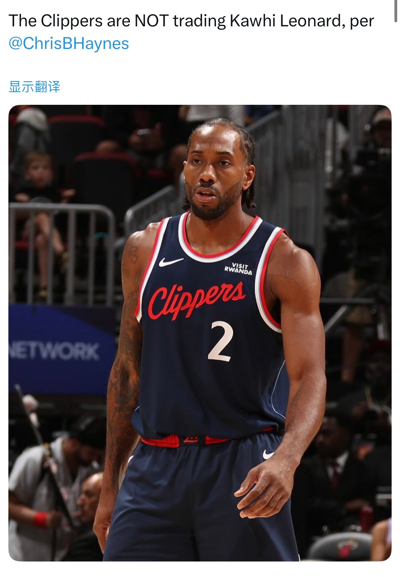 海爷证实,快船不会交易伦纳德!