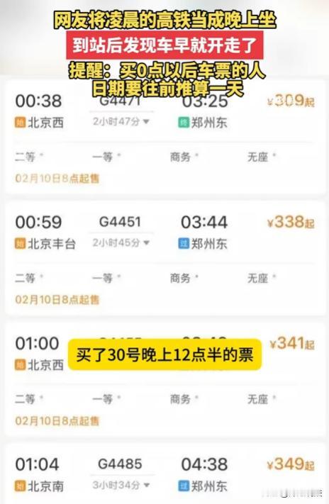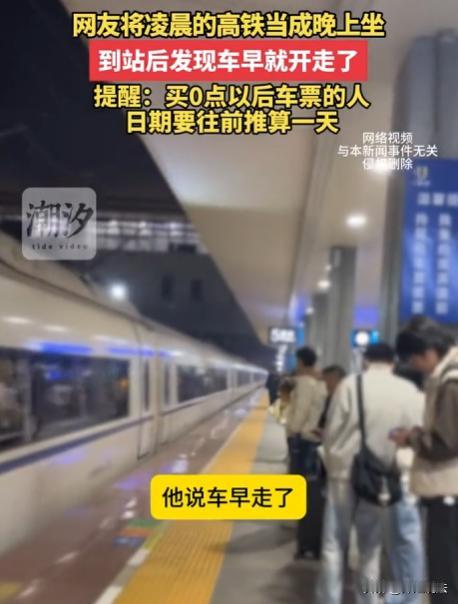 一男子外出打工,准备回家过大年,他买了30日晚上00:30的火车票,却提前一小时于11:30就到车站,结果发现火车早已开走,男子急了,称自己还没上车,工作人员让他核对上车时间,他这才恍然大悟,气得捶胸顿足,他哭着提醒大家,买凌晨车票一定要看准日期,不少网友表示自己也干过这事。 票是30号的,人29号深夜就到了,车却早跑了。这事听着像段子,真就发生了。 打工一年,攒钱不多,想早点回家,买了张30号00:30的票。怕耽误,29号晚上11点半就蹲在候车厅。这一蹲,蹲出个大乌龙。 候车厅人不多,冷清清的。他找个角落坐下,把行李抱怀里,盯着大屏看。时间一分一秒过,12点半了,没检票。他想,可能晚点,等吧。这一等就是一个多小时,到了1点多,连个鬼影都没见着。 心里发毛,跑去问工作人员。人家一句话,差点把他送走:车早走了,12点半就开了。 他眼珠子瞪得溜圆:我还没上车呢,咋就开了? 工作人员也不废话,指了指他手里的票:自己看,日期对得上吗? 这一看,票上写着12月30日00:30。他以为这是30号的开始,其实这是29号的结束。过了夜里12点,日子就翻篇了。 他29号11点半到,等的是29号深夜的车。等到30号0点以后,那就是31号了,车早就在昨天夜里发走了。 算来算去,把日子算岔了,以为提前到是勤快,结果是迟到了一整天,这不是晚点,这是穿越了。 工作人员看他那样,也只能摊手,规定就是规定,没票就是没票。 大老爷们,当场就崩了,也不顾周围有人,一屁股坐地上,拍着大腿哭,眼泪鼻涕一起流,嘴里喊着:我要回家!咋就这样了呢! 那声音,听着真惨,一年到头盼着这顿年夜饭,结果连锅都端走了。 这一哭,把候车的人都招来了,有人拍视频,有人劝,更多人是跟着叹气,谁还没个迷糊的时候? 凌晨的时间最坑人,12点是个坎,迈过去就是新的一天,他把“明天”当成了“今天”,这代价太大了。 网友看了视频,一堆人现身说法:我也干过!把1号当成31号,在车站睡了一宿。 上次我把凌晨2点当成晚上14点,差点误机。 这种坑,踩一次记一辈子,比啥都长记性。 他一边哭,一边还得给家里打电话,怎么说?说儿子笨,把日子记错了,回不去了? 电话接通那一刻,估计爸妈还在家等着包饺子,这下好了,饺子得留着明年吃了。 退票?改签?别想了,开车后就废了,这张票,成了一张废纸,也是一张昂贵的教训票。 几百块钱打水漂,还得再花高价买下一班,甚至可能买不到,得留在异乡过年。 工作人员其实也无奈,每天那么多人,谁能一个个盯着看日期?检票口只认时间和票,过了点就是过了点。 法律上讲,旅客自己看错时间,责任自负,铁路部门没责任,只能怪自己不小心。 这事真不能怪别人,车票上大大的12月30日写着,自己不看,能怪谁? 但话又说回来,凌晨的时间确实反人类,00:30到底算前一天还是后一天?很多人脑子转不过弯。他就是转弯太急,翻沟里了。 这也给所有人提了个醒。买凌晨票,尤其是跨天的,一定要把日期圈出来看三遍。00:00到06:00这段时间,是日期混淆的高发区。别像这位大哥,提前一小时到,结果迟到二十四小时。 这事看似是个笑话,细想全是无奈。为了碎银几两,奔波一年,最后卡在一张票上。 他现在的样子,肯定特别狼狈。行李还在脚边,人却回不去。这种落差,比丢了钱还难受。但生活不就是这样吗?总在你以为稳了的时候,给你来个急刹车。 网友的评论还在刷屏,有人说:这大哥是把30号当成30号的晚上了,其实那是30号的凌晨,属于29号的尾巴。这话绕,但理不绕。时间线这东西,真得理清楚。 最终,他还是得为自己的疏忽买单。这张作废的车票,会被他留着吗? 希望他最后能买到票,哪怕是站票。希望他能赶上家里的年夜饭,生活不易,且行且珍惜吧。 时间是最公平的,也是最无情的。看准了再走,别让回家的路,变成了迷路。 从法律层面讲,男子买票后因误解日期错过乘车,这属于自身疏忽导致的民事行为失误。 民法典中关于客运合同的规定,旅客有义务按车票载明的时间乘车,承运人也有义务在约定时间将旅客安全送达。 但本案中,是男子自己看错日期,未在正确时间到达车站,承运人并无过错,无需承担责任。 不过,在售票时,能否对凌晨车票的日期标注更醒目些?可以用不同颜色或加粗字体提示。毕竟,不是所有人都能准确理解凌晨车票日期跨越的规则。 男子因疏忽错过回家车,虽不违法却也让人同情。您觉得是否应该在服务细节上再做些优化,避免类似情况再次发生呢?