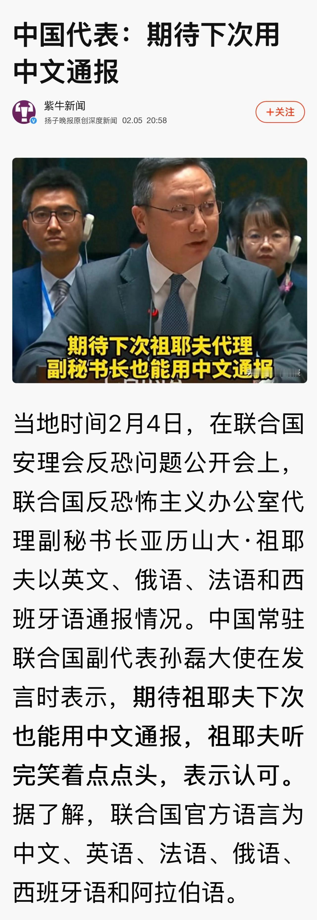 联合国虽明确规定了包括中文在内的六种官方语言,但在实际使用中,各语言并未得到完全均衡的体现。特别是在部分联合国文件和官方网站上,中文内容的更新与维护仍相对滞后。 近年来,中文在联合国的影响力确实有所提高,例如已有联合国官员在公开场合主动使用中文表达致意。然而,这与在正式会议通报、文件签发等系统性工作中常态使用中文,仍存在一定差距。 有观察指出,英语在联合国日常运作与信息发布中仍占据主导地位,而其他官方语言的内容则在不同程度上存在更新不及时、覆盖不全面等问题。这反映出在多语言政策的落实层面,仍有进一步推进的空间。