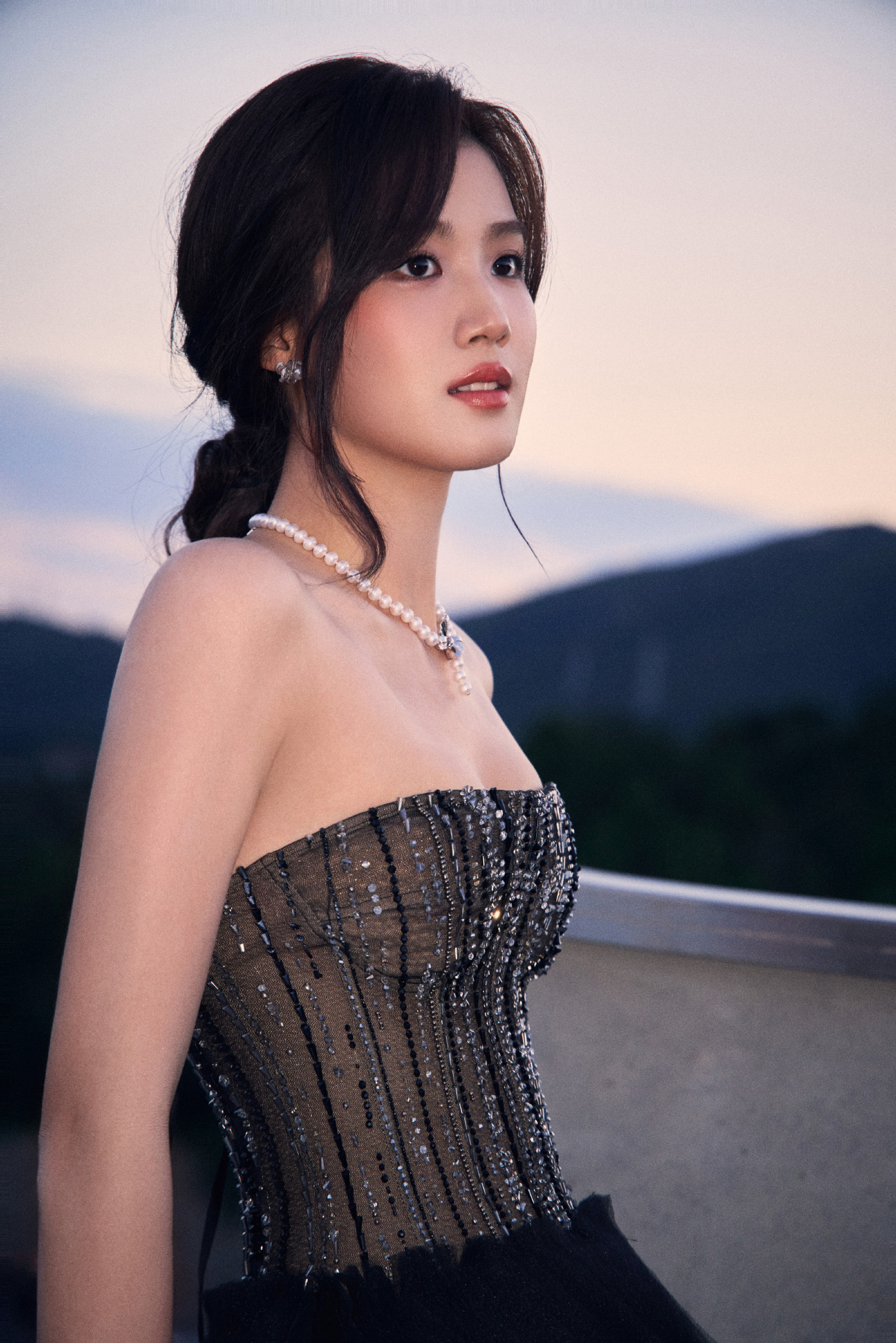 卢昱晓,抹胸黑裙美腿,好甜美好优雅。卢昱晓