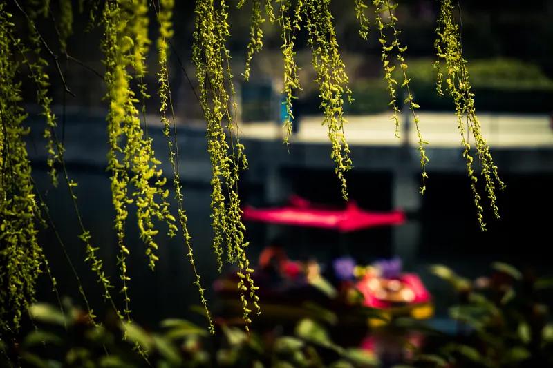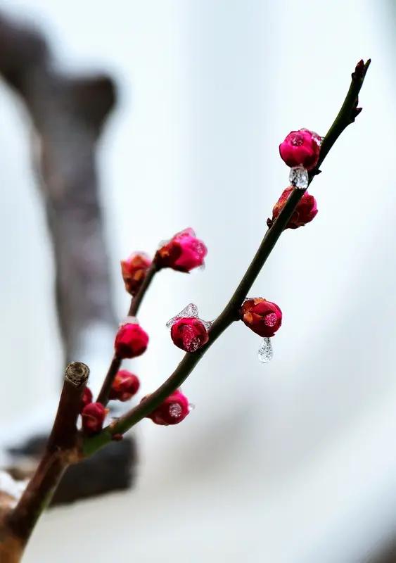 上联,红梅含苞傲冬雪,诚邀下联绿柳吐翠迎春风。