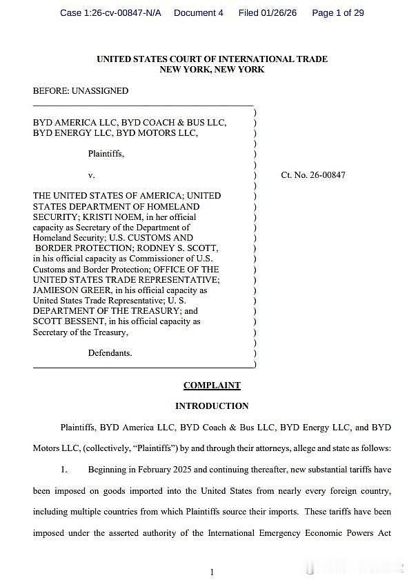 近日比亚迪旗下四家负责美国业务的公司,正式把美国政府告上了国际贸易法院,主要是为了反对美国加征的高额关税。 这四家公司管着比亚迪在美的卖车、造大巴、电池储能等核心业务。从2025年2月开始,美国就给比亚迪的电池、储能设备、零部件等中国商品加税,累计税率高达145%,让比亚迪成本涨了一大截。 比亚迪这次起诉,就是想让法院判这些加税的命令不合法,还要求美国把已经交的关税和利息退回来。这是比亚迪今年在美打的第一场关税官司,也是继之前上诉“第三国组装避税”处罚后的又一次维权。要是赢了,不仅能帮比亚迪挽回损失,还能给其他在美中国企业应对关税问题提供参考。