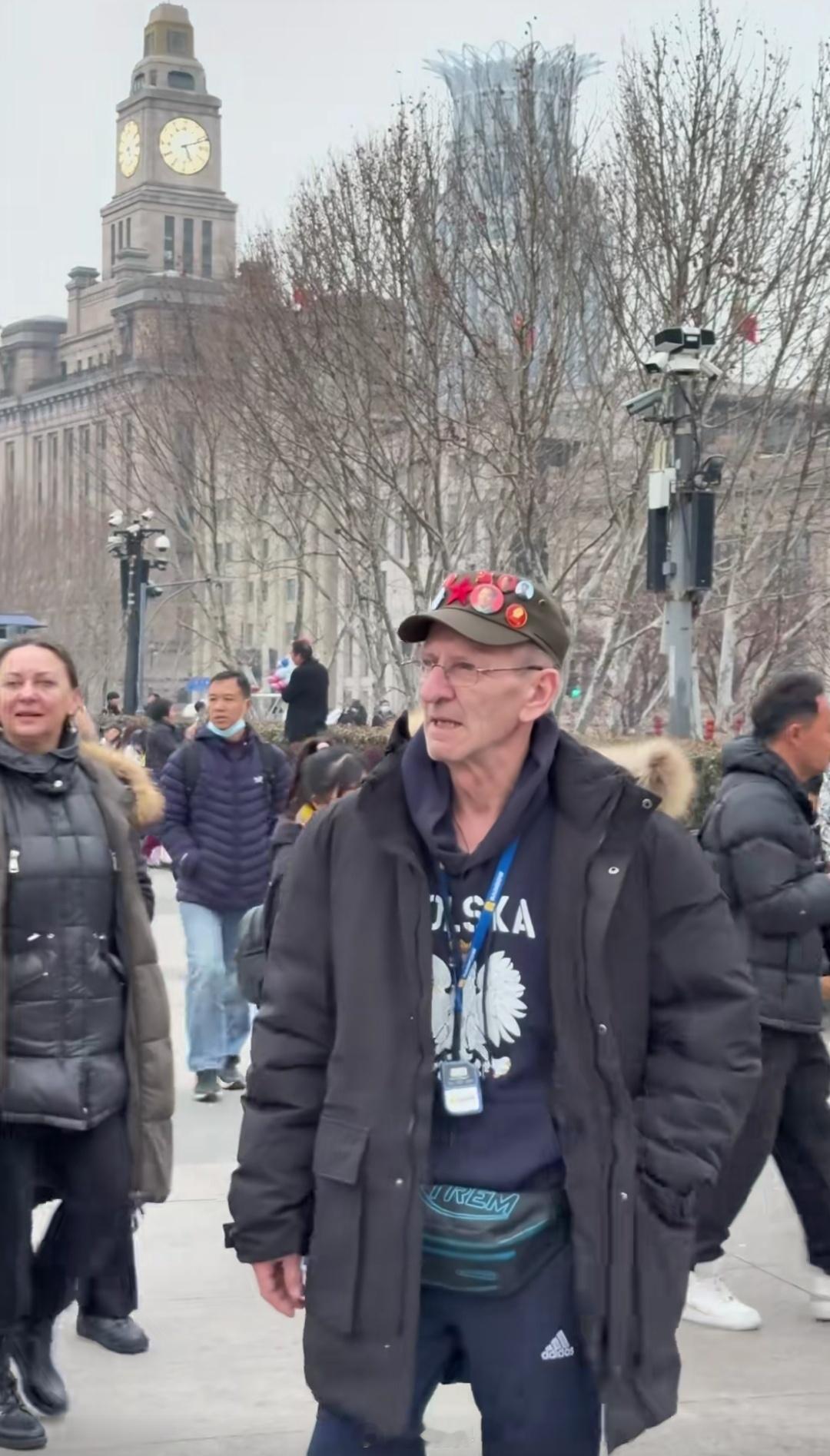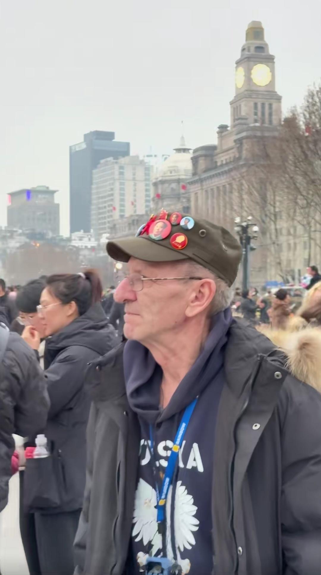 昨天,上海外滩,有网友偶遇美国退役大兵,红星帽上,别了很多教员像章,非常引人注目。有一种伟大,足以跨越山海与文化的疆界!