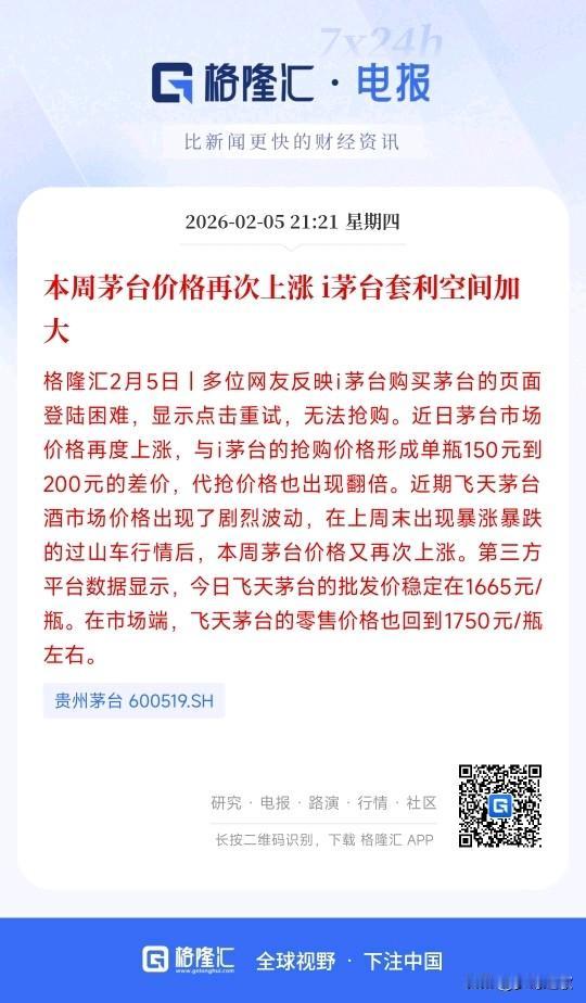 白银暴跌,资本开始回归神酒茅台 最近白银的暴跌可是真猛 最晚更是跌了将近20%,可以说是历史罕见。最低点到了64美元盎司,关键还没有找到支撑,今天还在下跌,已经抹平了今年的所有涨幅。 与之相反的是茅台,仅仅用了6个交易日就上涨了15.78%,可以说是从2024年以来最大的涨幅了。而且现在市面上的茅台疯狂的涨价,就跟炒黄金,白银的时候一样,很多资金在套利。 叠加上政策面一直再出消费利好,这波茅台又成为了年前的神酒。