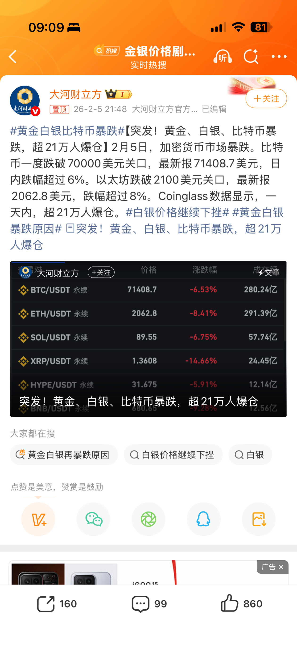 黄金白银比特币暴跌黄金昨晚又小跌了一点港股美股更是持续低迷还好今天新能源有波反弹行情当然相比比特币都是弟弟虚拟货币普通人真的别碰动不动就是加杠杆,爆仓血本无归