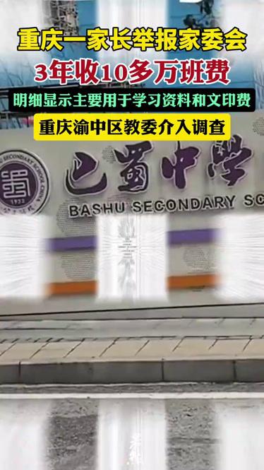 巴蜀中学桂花园学校家委会3年收10万+班费,家长怒举报 太离谱了!重庆巴蜀中学桂花园学校,一位初三家长忍无可忍实名举报(化名刘京),家委会3年竟收取班费超10万元! 据家长爆料,孩子班级约40人,仅初三阶段,每学期就多次收取500元/人,这些钱主要用来购买《启航》《高分突破》等教辅资料和文印费。 面对质疑,班主任回应称,所有收费都是“自愿透明”的,不存在强制要求。但家长直言,频繁收费早已加重家庭经济负担,3年10万+,平均每个孩子要交2500多,实在难以接受。 目前,渝中区教委已经正式介入调查,高额班费的具体流向、收费是否合规,成为大家最关心的焦点。 家委会收费该有上限吗?自愿收费真的能做到不强制?评论区说说你的看法,静待官方调查结果!