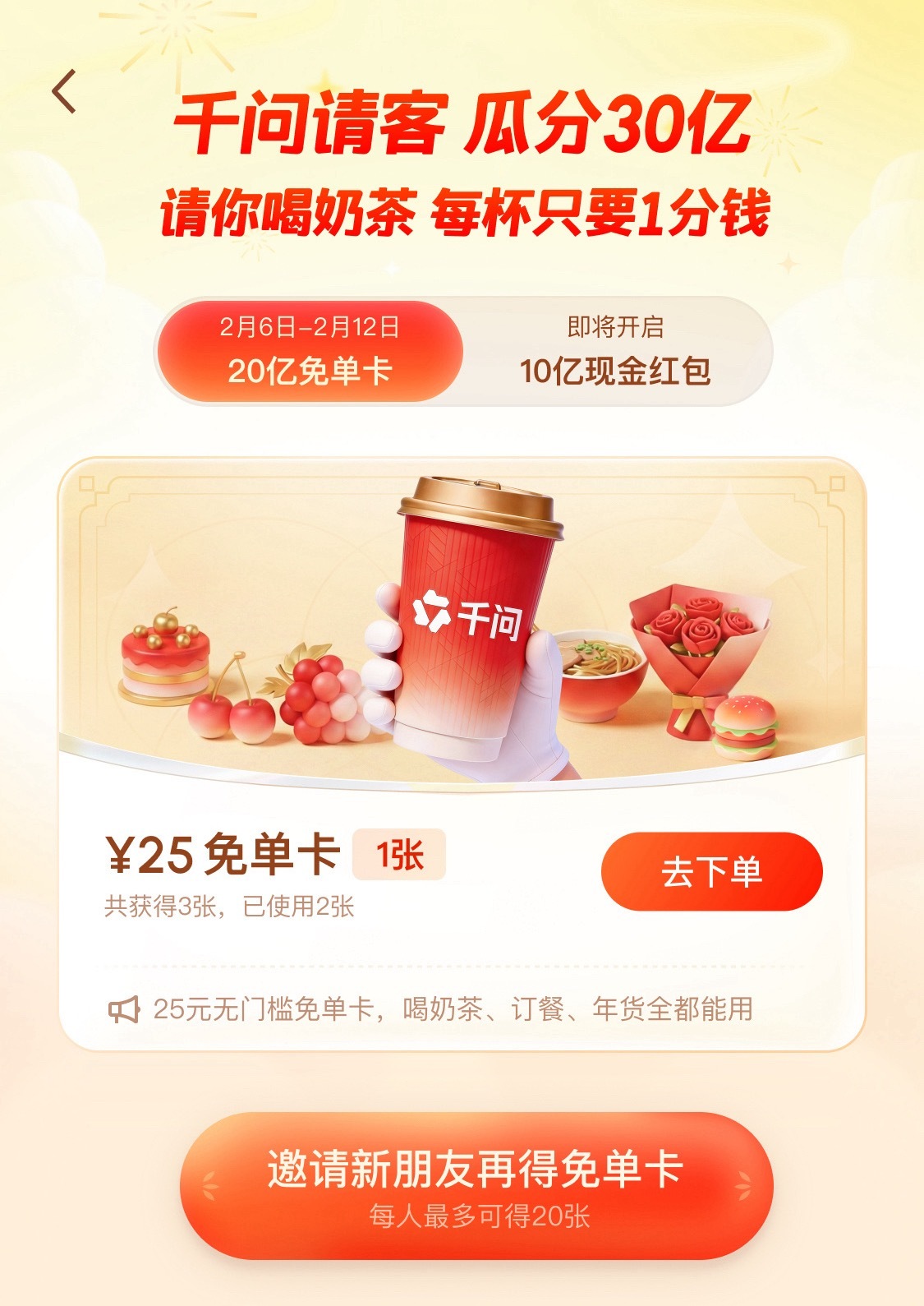 各位小伙伴有没有用过千问点单的可以试试看,评论区抽5个小可爱凭千问下单奶茶截图领取25元红包。