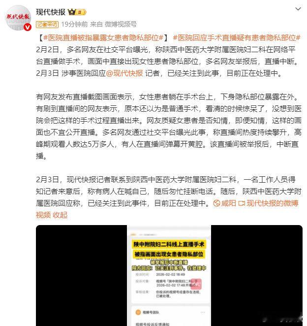 直播现女患者隐私部位2人被处理陕西中医药大学附属医院致歉通报汤泉馆顾客身穿桑拿服被直播医院就诊被拍视频发网上晏秋秋