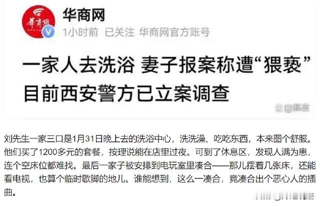 西安,一男子带着老婆孩子去洗浴中心放松,本来想着洗洗澡、按摩一下,但是没想到,自