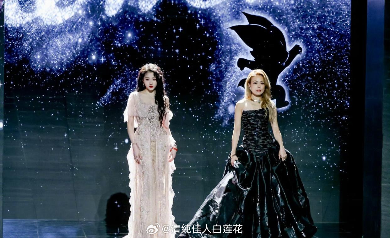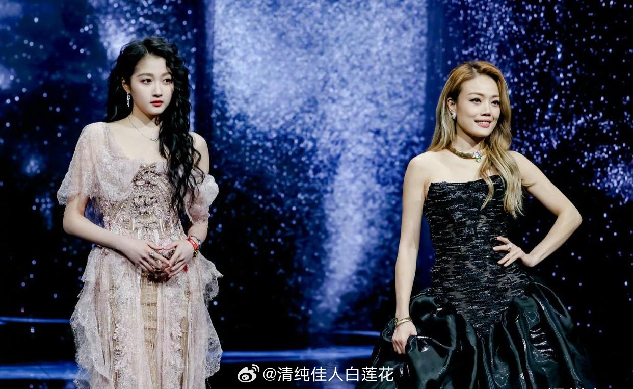 关晓彤缩脖凹造型,仪态直接输给了一旁的容祖儿。容祖儿在年龄、容貌上不及关晓彤,但赢在了自信大方。
