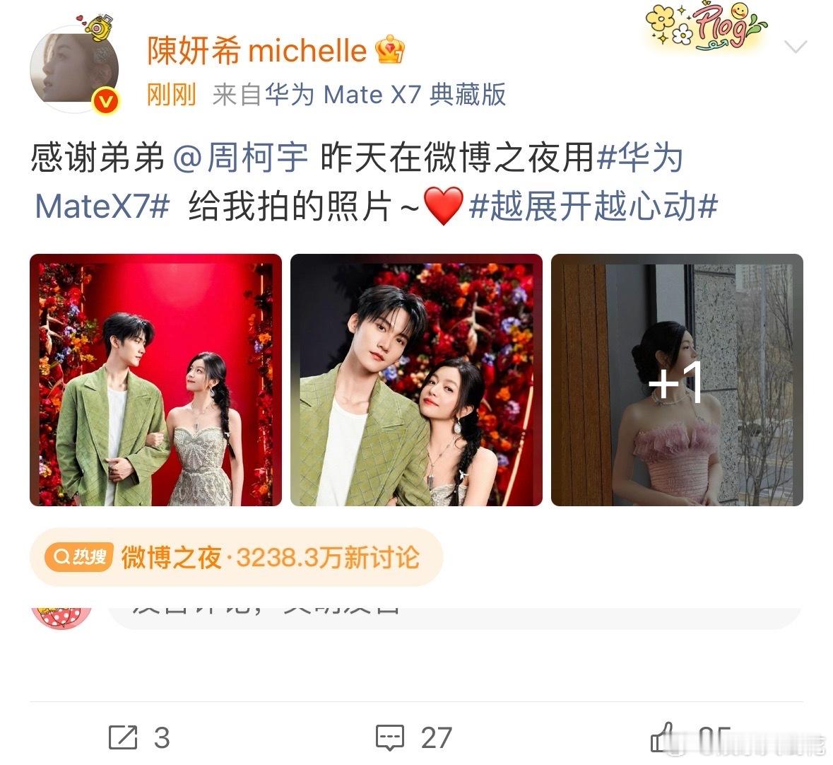 陈妍希感谢弟弟周柯宇拍的照片陈妍希晒周柯宇给自己拍的照片 陈妍希发微博晒了周柯宇给自己拍的照片 还发了两人合照 好亲密~