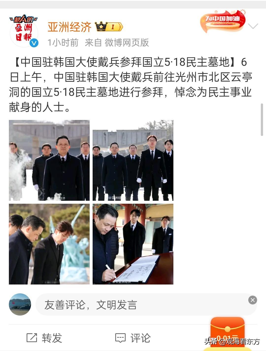 戴兵前往光州,这不是一般的举动,也不会是个人行为,应该代表着国家的态度。