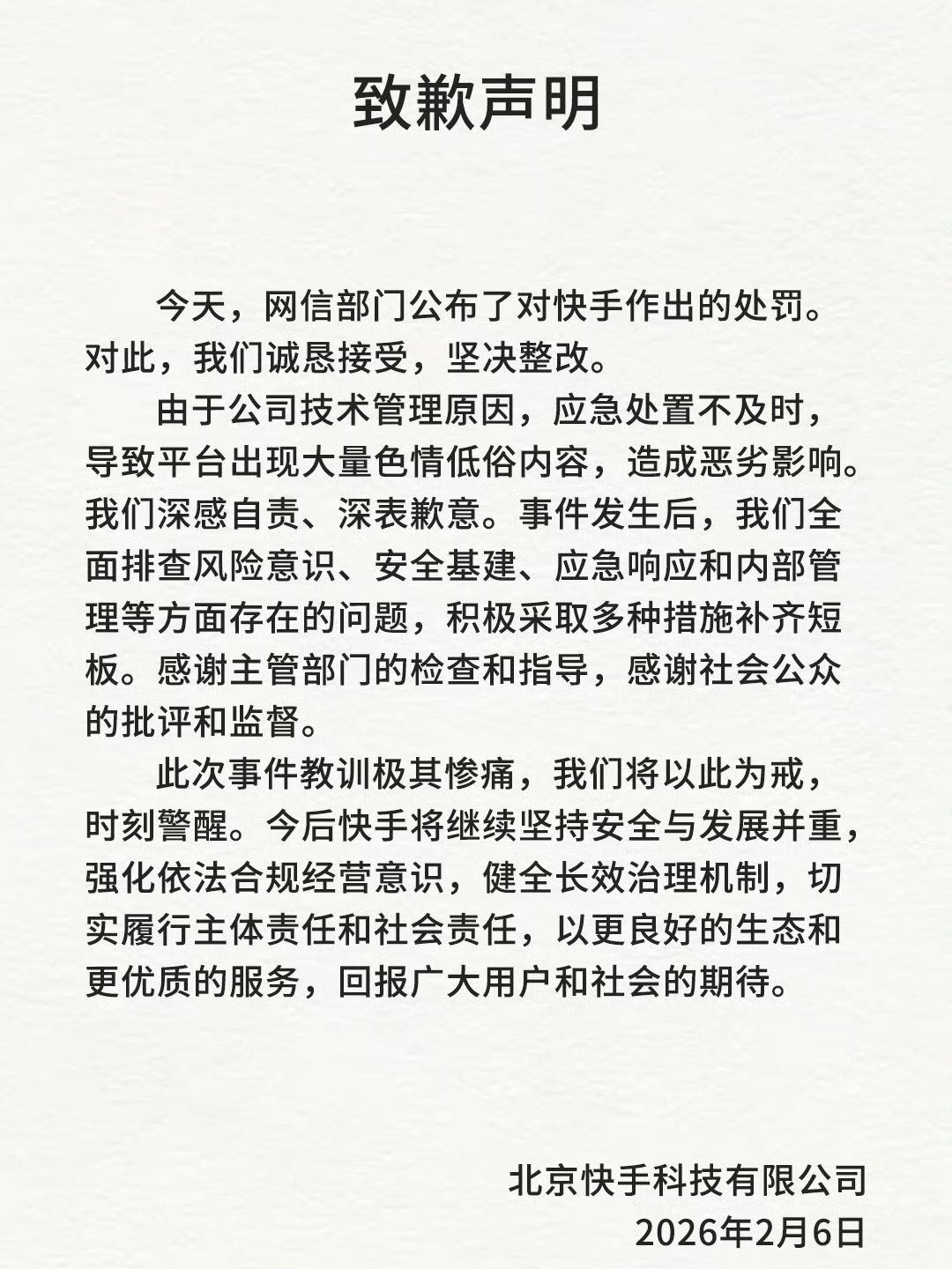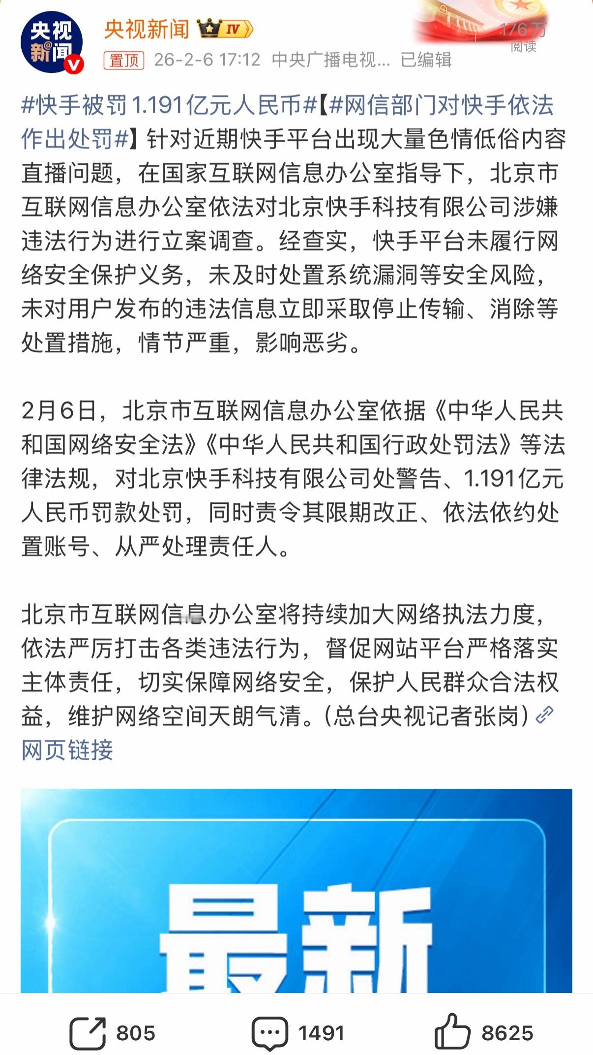 长期以来,快手的内容生态频频被质疑低俗、擦边,这次重罚既是惩戒,也是警示。希望整改别再停留在道歉和表态上,真正把平台责任落实到位。