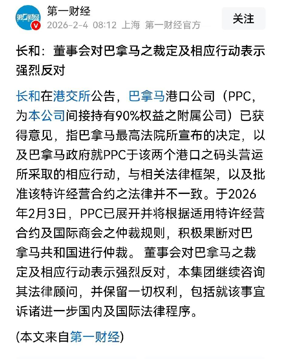 李嘉诚应该明白了,中国才是他最坚强的后盾。 前段时间,李嘉诚出售港口,其中包括对中国有战略意义的港口。尽管中国国有企业开价更高,但李嘉诚还是决定卖给西方。 当然这一决定对李嘉诚的声誉造成毁灭性的打击。以李嘉诚的精明,他不可能看不到这一点,但还是选择了卖给美国。 他这个年纪的人,总是对西方有莫名其妙的崇拜。或许那个时候西方确实强,已经深深影响到了这批人。所以李嘉诚没选择中国。 但是吧,李嘉诚之流还是低估了对方,他们根本不想付钱。巴拿马背后是美国,一句话就把港口抢过去了。 现在李嘉诚也应该醒悟了,不站在中国这一边,他就是一只肥羊。强收港口只是开始,接下来就是吃干抹净了。 还好不晚,李嘉诚也决心反抗,长和集团开始起诉巴拿马。 但是光靠起诉没啥用,毕竟司法解释权在人家手里,只能让自己有理一些而已。还要靠经济甚至军事的手段,才能保住多年辛勤建设的成果。 这一点李嘉诚们是没有的,唯独中国可以有,经济可以绞杀巴拿马,军舰可以开进运河,舰炮可以颠覆巴拿马。