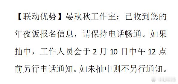 马年新春将至,秋秋“请铁粉吃年夜饭”的活动,即将启动。年夜饭时间是2月11日中午(腊月二十四,南方小年),地点在上海市中心云南南路。这一次,秋秋自费定下了20桌,招待铁粉及志愿者。活动采取“报名+摇奖”的方式。亲密度高于10540分者,都能报名参加。这个10540分,是怎么算出来的呢?粉丝团成员,每天通过转发、点赞、评论、观看等互动,亲密度满分是330分(无需送礼)。我们从1月3日开粉丝团至今,按每天310分计算,就算出了这个10540分。符合条件的铁粉,可以按照这张图,编辑“微信名+年龄+亲密度数值”,发送短信报名。报名截止时间是2月7日晚22时。我们会在7日10时、18时、8日10时三个时间段,给报名的粉丝回复短信,短信内容如图。需要强调的是,如果您摇奖摇中,我们会于2月10日中午12时前,电话通知。搞一场公益活动不易,请大家在年夜饭活动时,听从现场志愿者指挥,开开心心迎接新春。此外,接下来,我们还会“送福进万家”,今年还有多场“秋游”、“秋晚”公益活动,游轮相关事务,也在积极推进,请大家耐心等待。