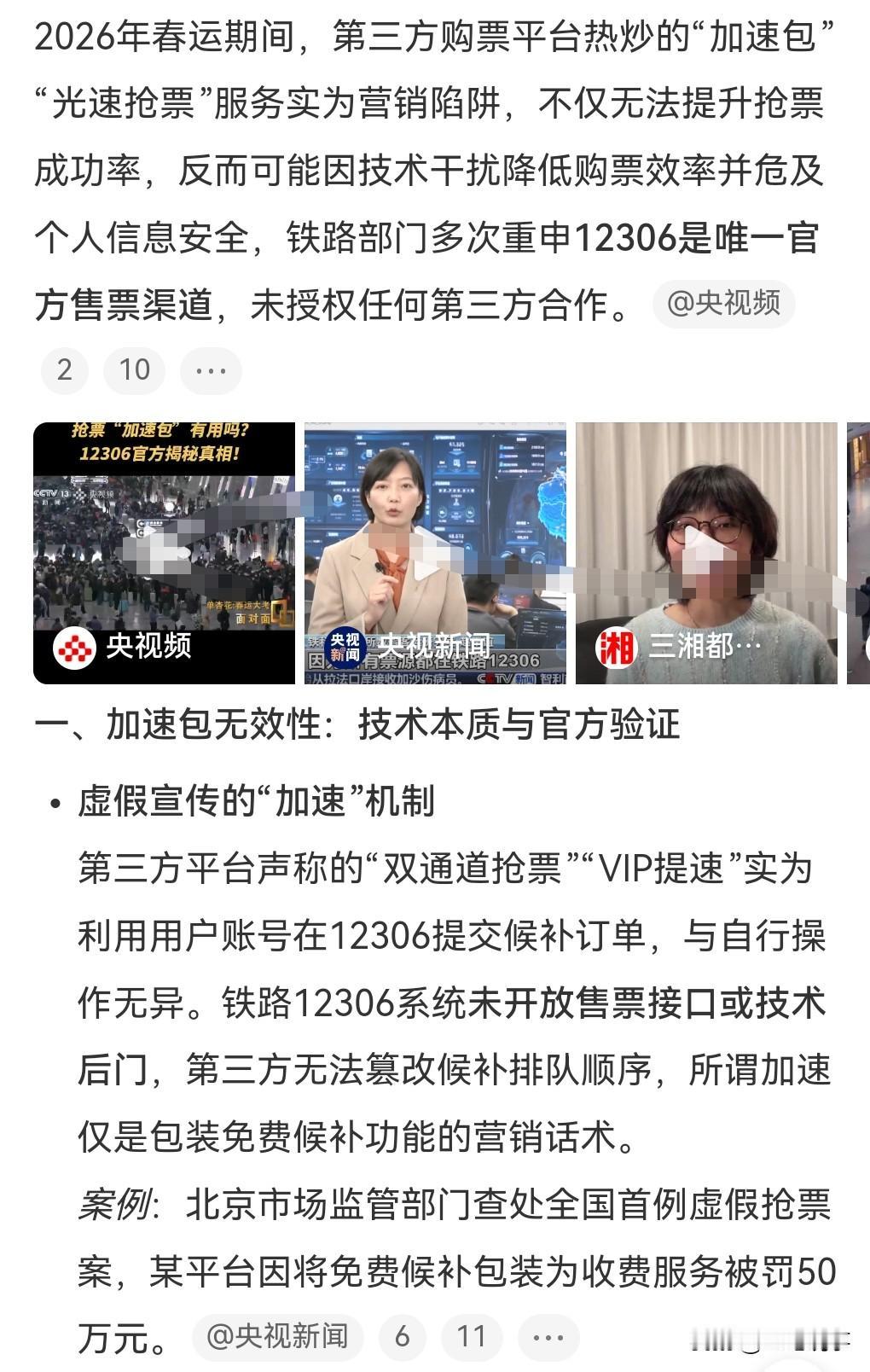 既然一切付费抢票加速都是一种骗局的话,这就涉及到一个诈骗的问题了,警方应该抓住犯罪分子。 相信很多人为了买到火车票,有不少人都购买过第三方的抢票软件。 但遗憾的告诉你,你已经被骗了。 因为这些第三方平台的抢票加速包没有任何效果,只是一种营销诈骗而已。 所以以后不要再付费买什么所谓的加速包了。