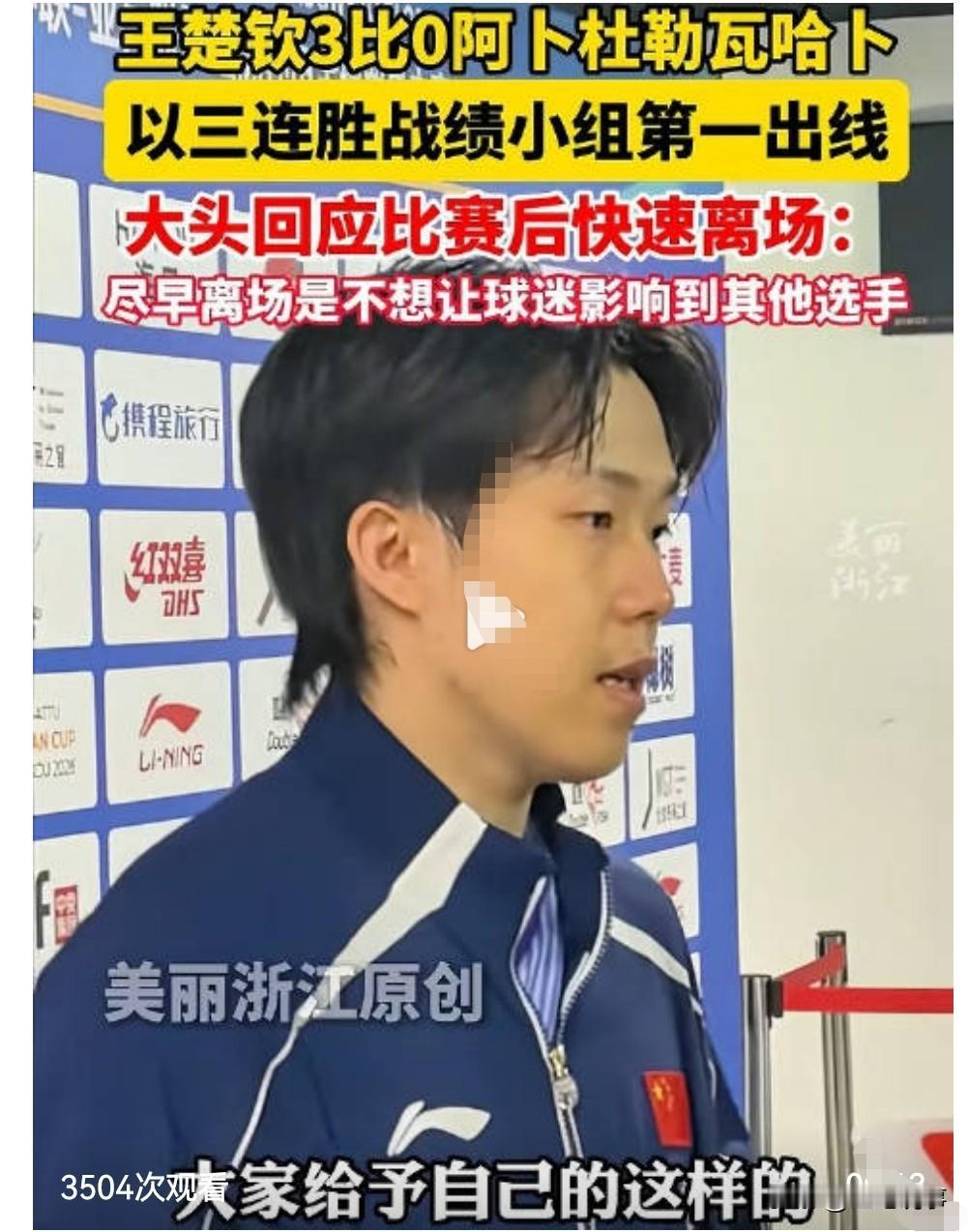 王楚钦还挺暖心的。中国乒乓球迷对乒乓球运动员那是很大力支持的,经常比赛场馆里面响彻着震耳欲聋的加油声音。 但是这种过度的热情往往会让某些运动员压力山大。 王楚钦就有这方面的困扰。 2月6日海南海口亚洲杯现场,大家山呼海啸的为王楚钦加油! 赢下比赛的王楚钦快速离场,他回应称尽早离场,是不想让球迷影响到其他选手。 从这一点来看,他确实很暖心啊。