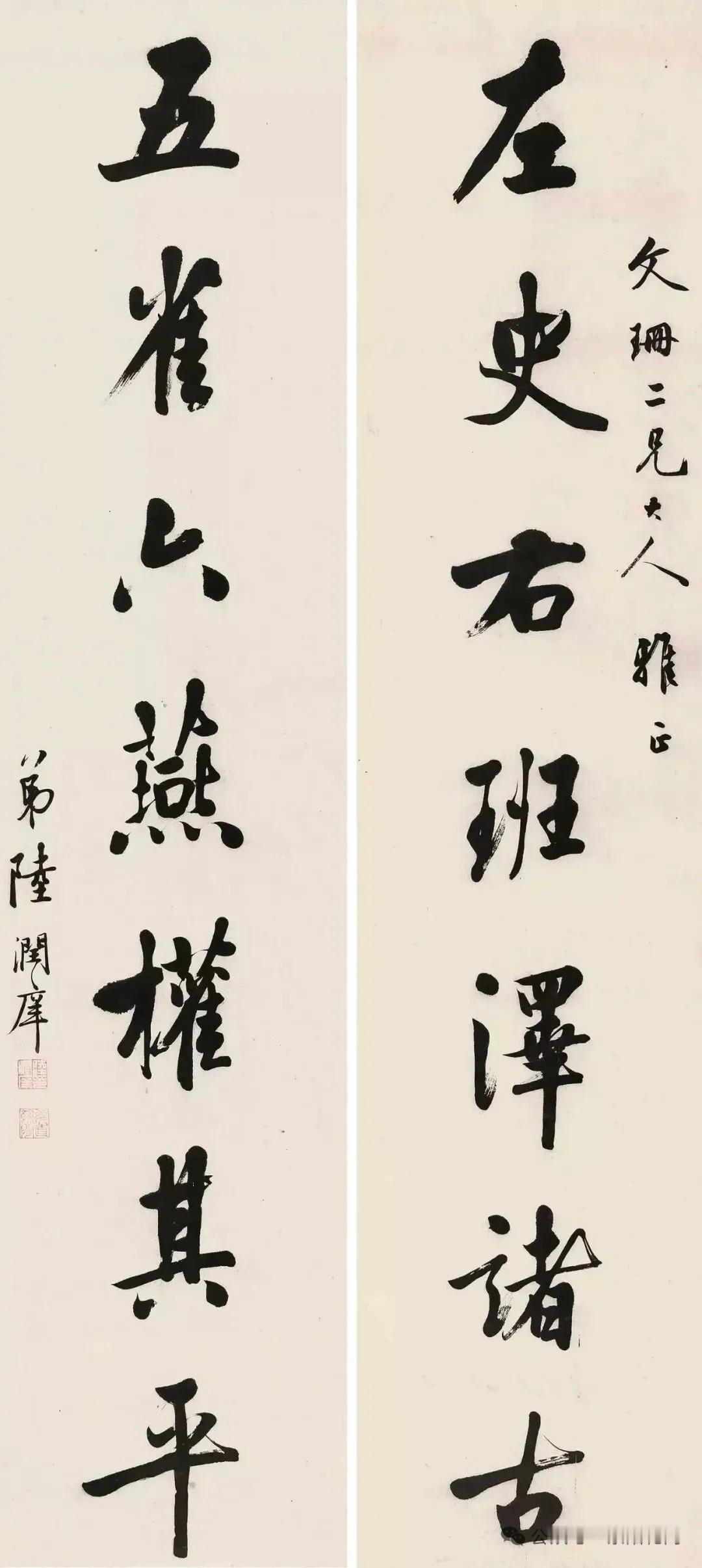 这是一副让人为之一振的绝妙楹联 🤩这副“左史右班泽诸古,五雀六燕权其平”,短短14个字,把千年文脉和世间至理都装了进去! 上联“左史右班泽诸古”,左丘明与班固两位史学大家并肩而立,《左传》的微言大义与《汉书》的雄浑笔力,如江河汇海,滋养着后世所有读书人。 下联“五雀六燕权其平”更绝!用“五雀六燕”的古老典故,讲的是称量时精准平衡的智慧,暗合着处世、治学都要追求公允之道的深刻哲理。 一边是史家的浩瀚星河,一边是人间的权衡智慧,这副楹联不仅是书法珍品,更是中国人骨子里的精神密码,让人在笔墨间读懂千年的文化底气。