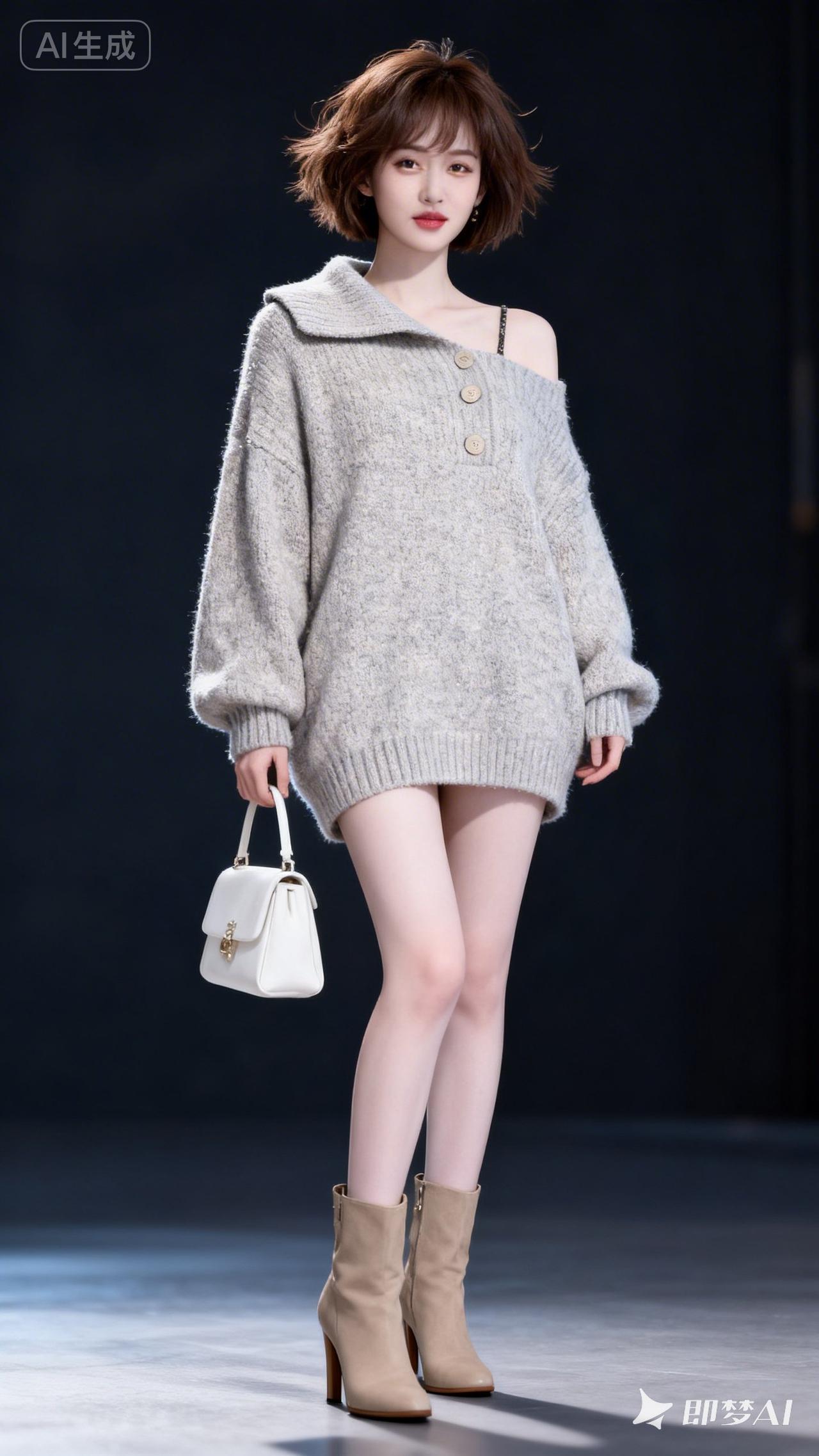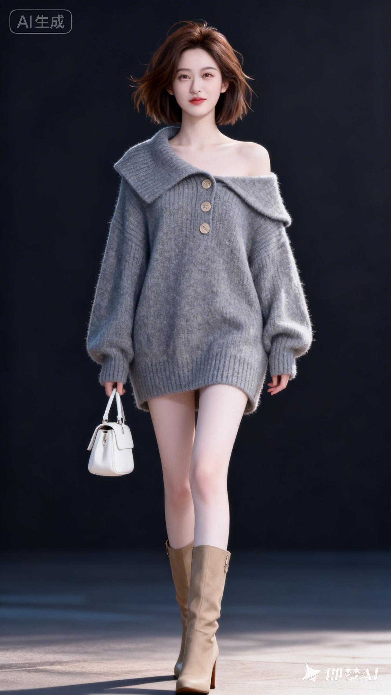 秋日穿搭指南:灰色毛衣+米色靴子,温暖又时尚!
