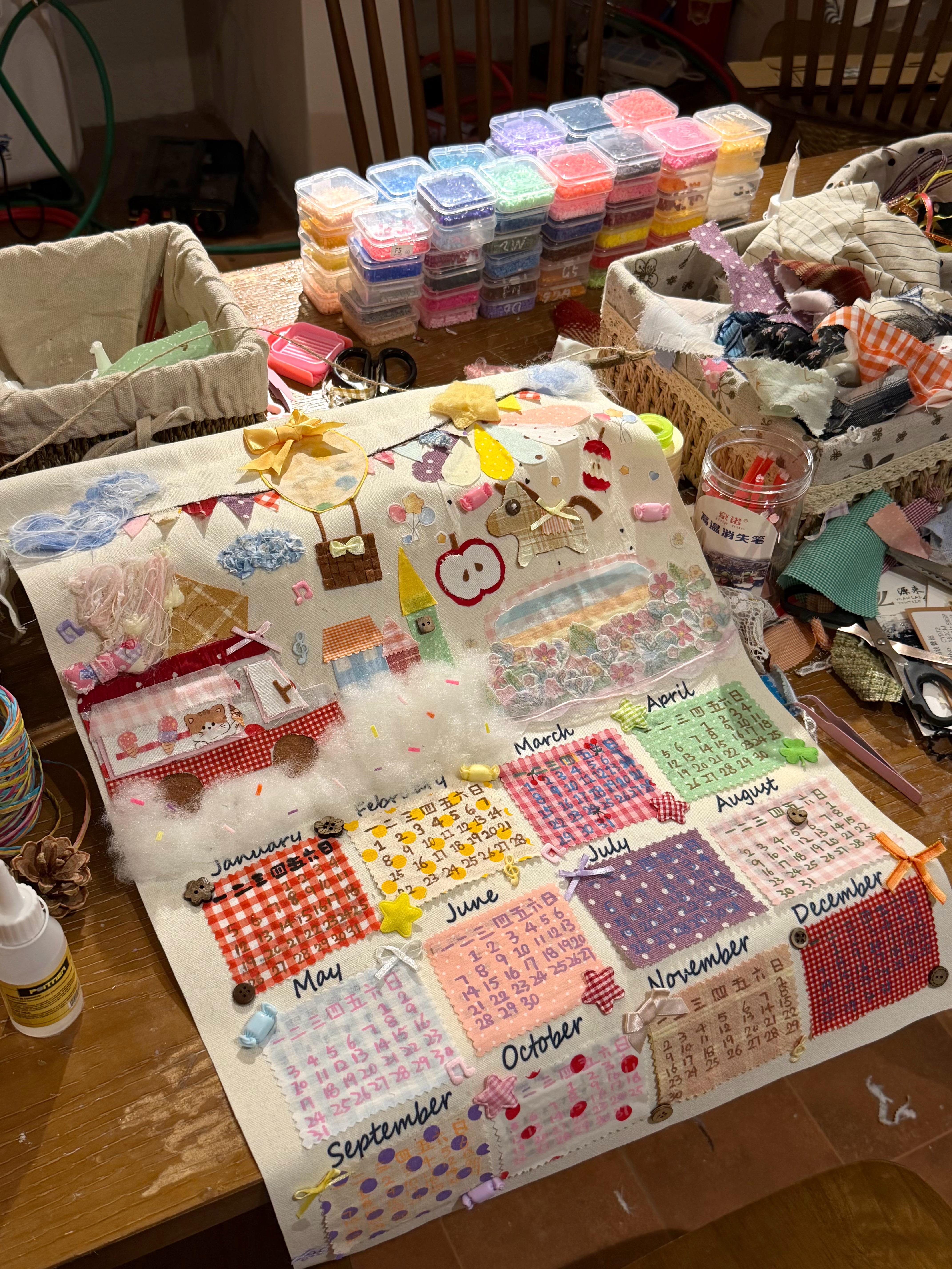 怒干十三个小时!布艺日历diy初体验啊啊啊!特别沉浸式的手工日。好喜欢!每一处的小巧思都是我精心设计被店里好多人都夸了嘿嘿米琪吵吵屋