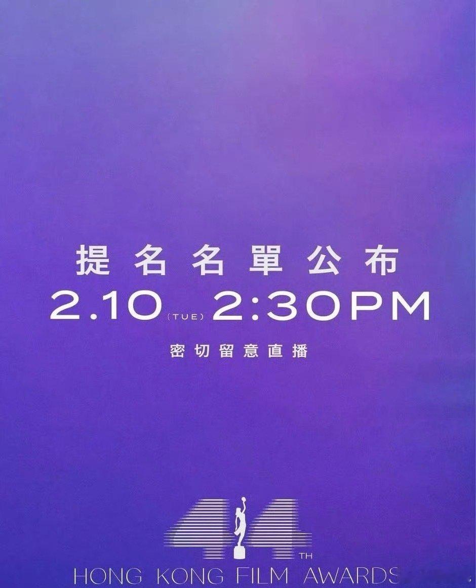 香港电影金像奖下周二(2.10)下午两点半直播,公布提名名单