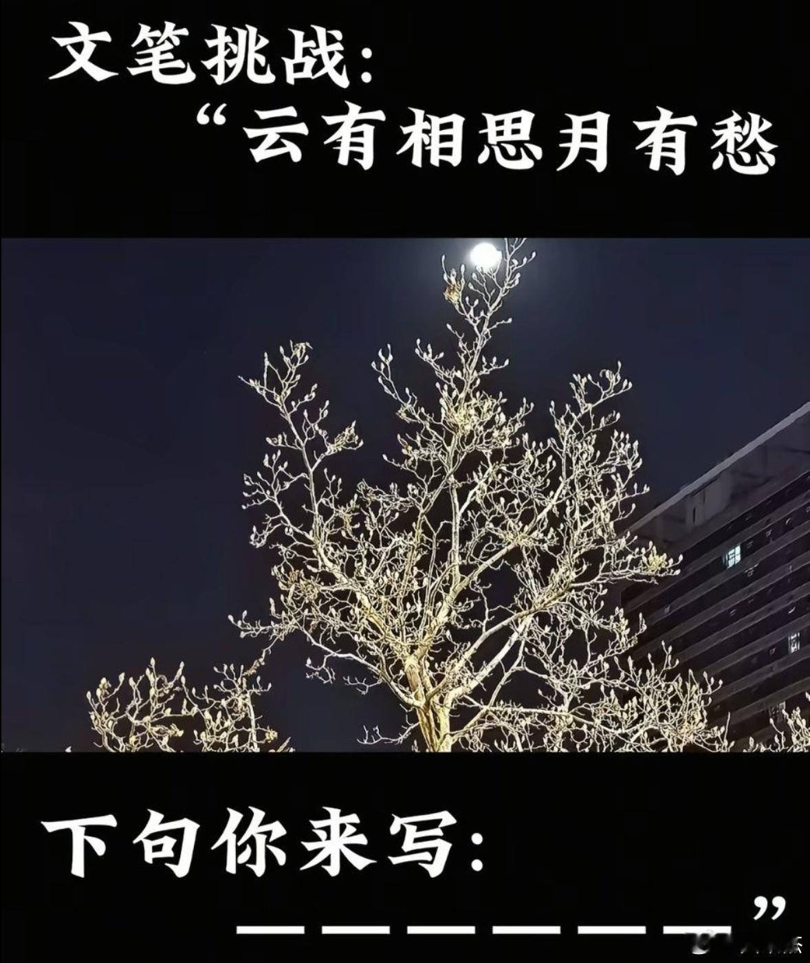 文笔挑战,我想到了一句:云有相思月有愁,但是想不出下一句了。你能帮我接上吗?