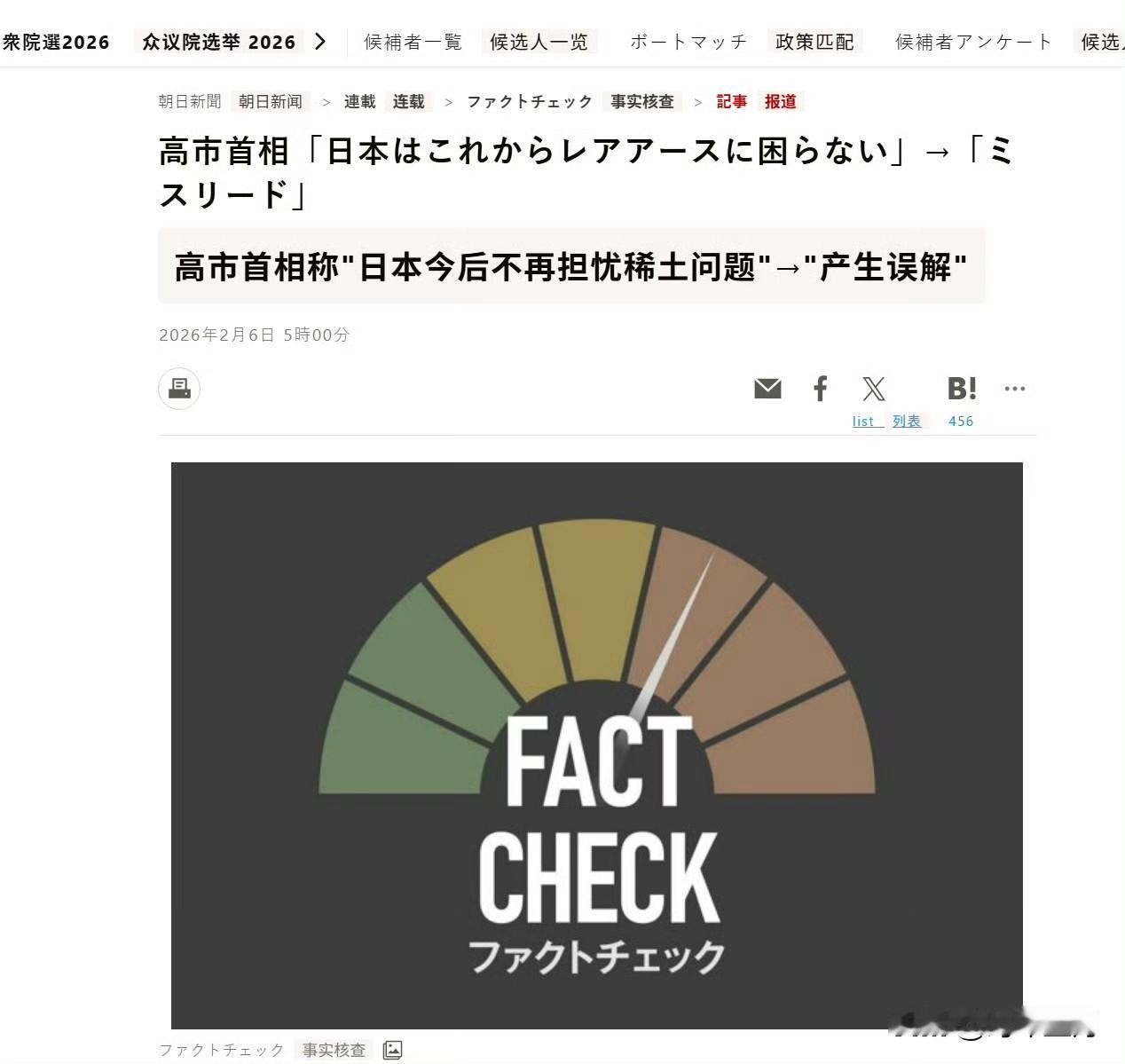 🔻朝日新闻:“高市早苗说:‘日本今后不再担忧稀土问题’,这是错的,让我们来做个事实核查。” 🔻“这次日本测试验证的是从海底提取泥浆在技术上是否可行,能否稳定开采、产量是否足够支撑民间经营、环保措施下能否精炼等问题都尚待验证,所谓‘日本不再短缺’的说法实属夸大。现阶段宣称‘日本无需担忧’依据不足,容易引发误解。”