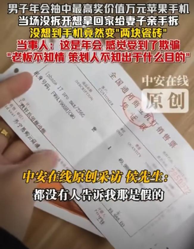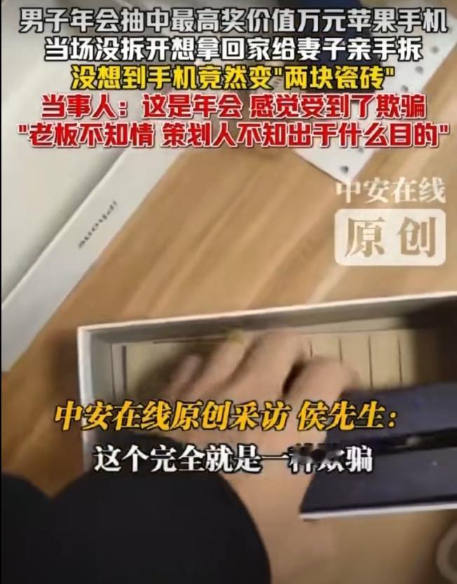 “拿我当猴耍?”广东珠海,一男子在年会上抽中了一部价值9988元的手机。谁知当妻子拆开手机盒后,却发现里面只两块瓷钻,这可把男子气坏了,指责公司玩不起。但老板感到十分委屈,称自己也不知情,是策划搞的。男子得知后,表示策划必须道歉。可万万没想到,策划作出的最新回应,让男子彻底坐不住了。(来源:中安在线) 据悉,2月3日晚上,男子所任职公司召开年会,并提前公布了今年的奖品,其中特等奖是一部价值9988元的256个G内存的苹果17pro手机。 男子一开始也没什么想法,重在参与就行,可当其他同事纷纷中奖并上台领奖时,男子还是有一点点羡慕的。 在抽奖的最后环节,那个特等奖正在等待得主的出现,男子也紧紧盯着显示屏,想要看看谁是今天的幸运儿。 当主持人揭开特等奖的中奖号码时,男子惊讶地发现,幸运的光环竟然照到了自己身上,顿时激动不已。 随后,男子上台领取了他的特等奖,令他没想到的是,竟然是大老板亲自为他颁奖,这让男子无比的兴奋。 在年会结束后,男子没有拆开手机包装,他打算回家给妻子拆,而且这部手机也是打算给妻子使用的。 当妻子得知丈夫中了一部最新款苹果手机,而且是要送给自己的,心中无比的甜蜜。 可万万没想到,在拆开包装后,男子和妻子却被手机盒中的东西给整懵了。 “怎么会是两块瓷砖?”“手机到哪去了?”一个个问号出现在男子与妻子的脑海里。 之后,男子向公司提出了疑问,大老板得知后也被整懵了,特等奖怎么会是两块瓷砖?那可是自己亲手颁的奖。 然而男子的拆箱视频摆在眼前,老板也不得不相信这是事实。但老板表示自己并不知情,抽奖活动都是策划人员在搞。 男子也认为老板不可能这么无聊,肯定是策划搞的鬼,他对此十分气愤,表示手机可以不要,但策划必须给个说法,必须道歉。 此事逐渐发酵后,公司年会的策划人员终于站了出来,他表示并非针对男子本人,设立如此特殊的特等奖就是为了整蛊,以达到活跃年会气氛的目的,就是要看看谁的运气最差。 虽然这个策划人是男子的科室的主任,但男子还是表示手机可以不要,但策划人必须道歉。 那从法律角度来看,策划的行为该如何评价?男子能否要求策划兑现苹果手机一部? 首先,公司安排的年会抽奖活动具有一定的射幸性质。 射幸合同是指双方当事人以将来不确定事件的成功与否决定财物得失的合同,属于双务合同的范畴。比如:彩票买卖就是一种射幸合同。 公司在年会抽奖环节,公布了特等奖是一部最新款苹果手机,那么中奖者就应当获得一部苹果手机。 其次,公司策划安排的抽奖活动,其实也是一种福利发放的形式,以此激励员工的积极性。 由此可见,在男子抽中特等奖后,其应当获得一部苹果手机,而不是两块瓷砖。 既然现在特等奖变成了两块瓷砖,这说明公司并未履行相应的福利承诺。 《民法典》第7条规定,民事主体从事民事活动,应当遵循诚信原则,秉持诚实,恪守承诺。 因此,整蛊归整蛊,公司仍应当将苹果手机补给男子,否则就是不诚信。 那男子是否有权要求策划赔礼道歉呢? 赔礼道歉主要适用于自然人的人格权、名誉权等受侵害的案件。 《民法典》第995条规定,人格权受到侵害的,受害人有权依照本法和其他法律的规定请求行为人承担民事责任。受害人的停止侵害、排除妨碍、消除危险、消除影响、恢复名誉、赔礼道歉请求权,不适用诉讼时效的规定。 其中,人格权包含了生命权、身体权、健康权、姓名权、名称权、肖像权、名誉权、荣誉权、隐私权等权利。 按照策划所说,他的目的并不是针对男子,而是想要整蛊下获得特等奖的获奖者。 对于这种心态,其实和愚人节愚弄他人差不多,一般只要不过分,不涉及到侵犯人格尊严的问题,双方之间一笑了之,但这种行为确实会让人感到心理不适。 目前,男子与策划人已经协商妥当,在2月10日的一个更大型的年会上,由策划人向男子公开鞠躬道歉。 对此,有网友表示,不要那么较真了,人家毕竟是你的科室主任,你这么一搞,以后的日子不好过了。 还有网友表示,为什么不要手机?要道歉?道歉值几个钱。 甚至有网友表示,这发票都开出来了,说明手机的确是购买了,不能被策划给私吞了吧。 如果您遇到这种事,会如何选择呢?欢迎留言交流。