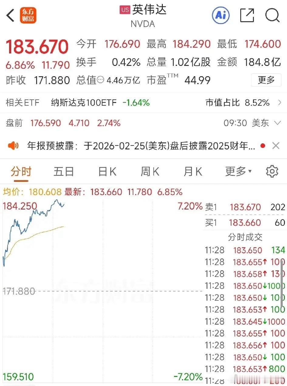 道指直接干到了历史新高,最夸张的是英伟达,盘中狂拉近7%,一夜之间,市值增加了约2万亿人民币——这体量放进A股,都能排到工行和农行之后,稳坐第三把交椅!芯片、光通信板块,也一片欢腾。