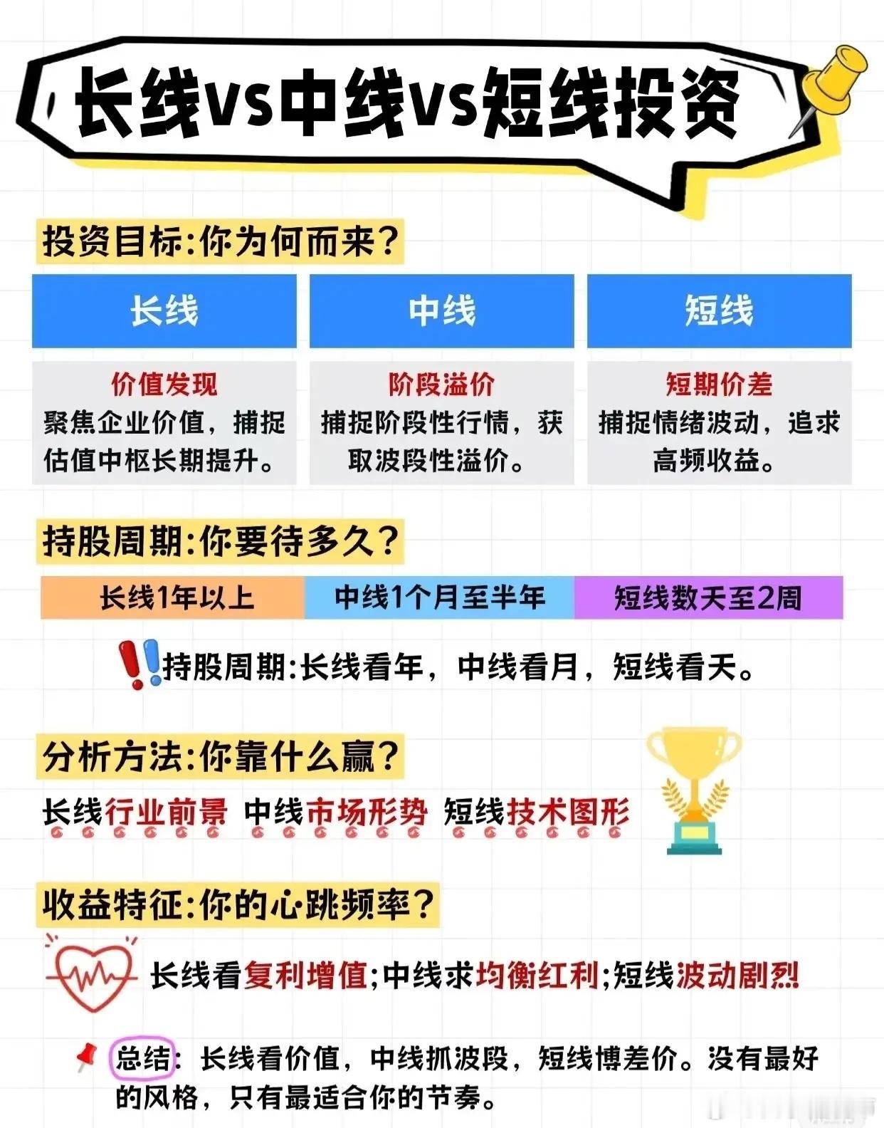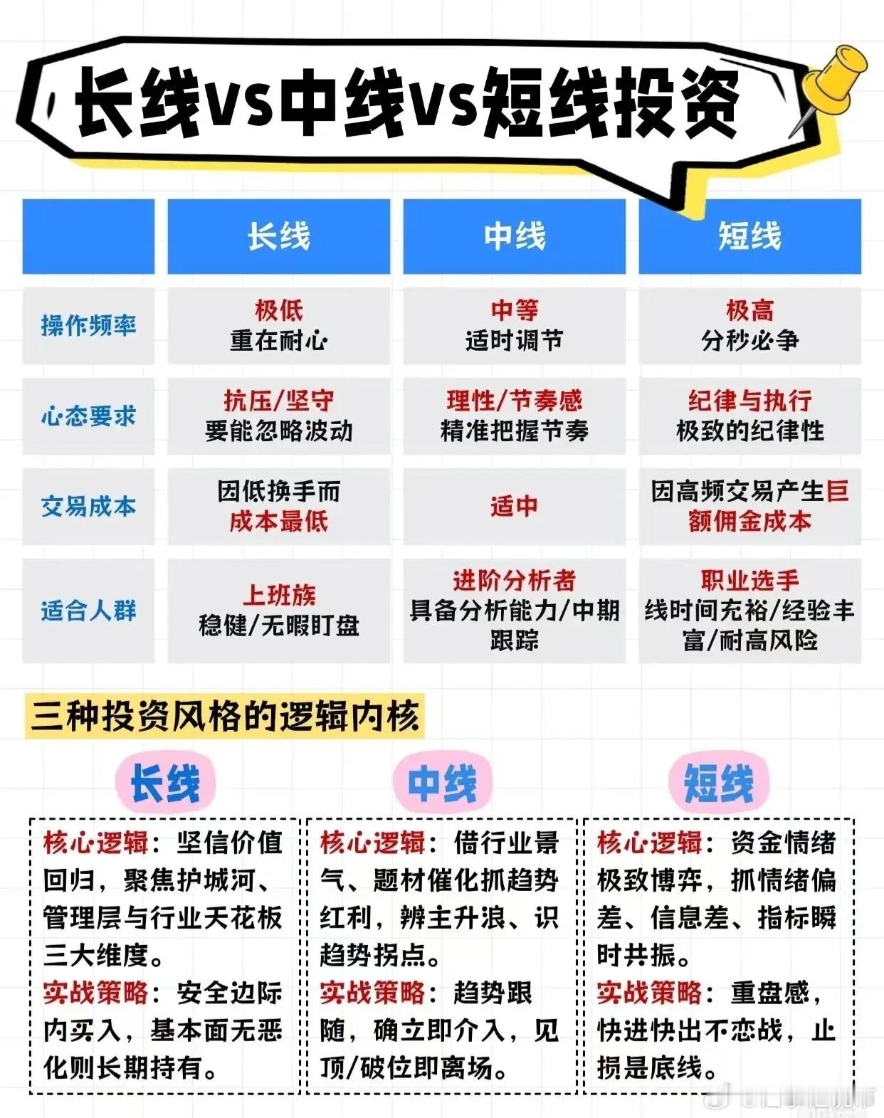 “长线 vs 中线 vs 短线”投资的差异和适用场景。