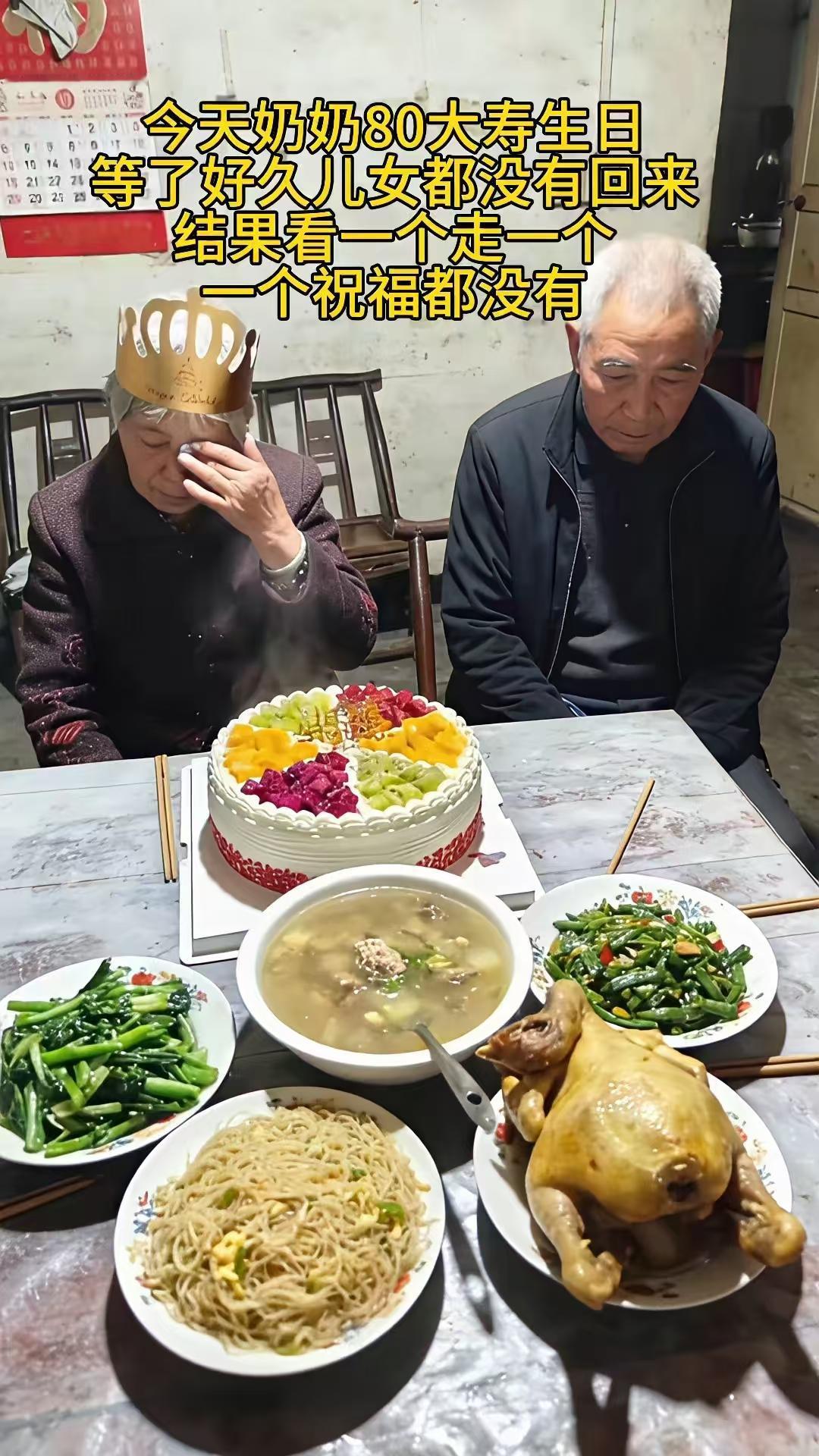 80岁生日宴,儿女缺席。生日当天吃点饺子或者长寿面,做二道自己喜欢吃的菜就好,晚辈回来太闹了,又受累,我今年都快七十岁了,不特意过生日,真没啥意义! 儿女一个都没回来,为啥还看一个走一个,不明白。 这两个老人也是,平时对孩子咋样心里没有一点数吗?一个巴掌拍不响。 老人只要身体健康,过生日就吃长寿面再加个荷包蛋,等活到100岁再好好过生日! 看了太多老人过生日,生了姑娘的逢年过节生日欢天喜地,生了儿子的各有各的委屈。很多时候想,儿子要生活姑娘出嫁以后难道就不过日子了? 偏心的父母,结局一般都很惨,信不信由你,事实就是这样。