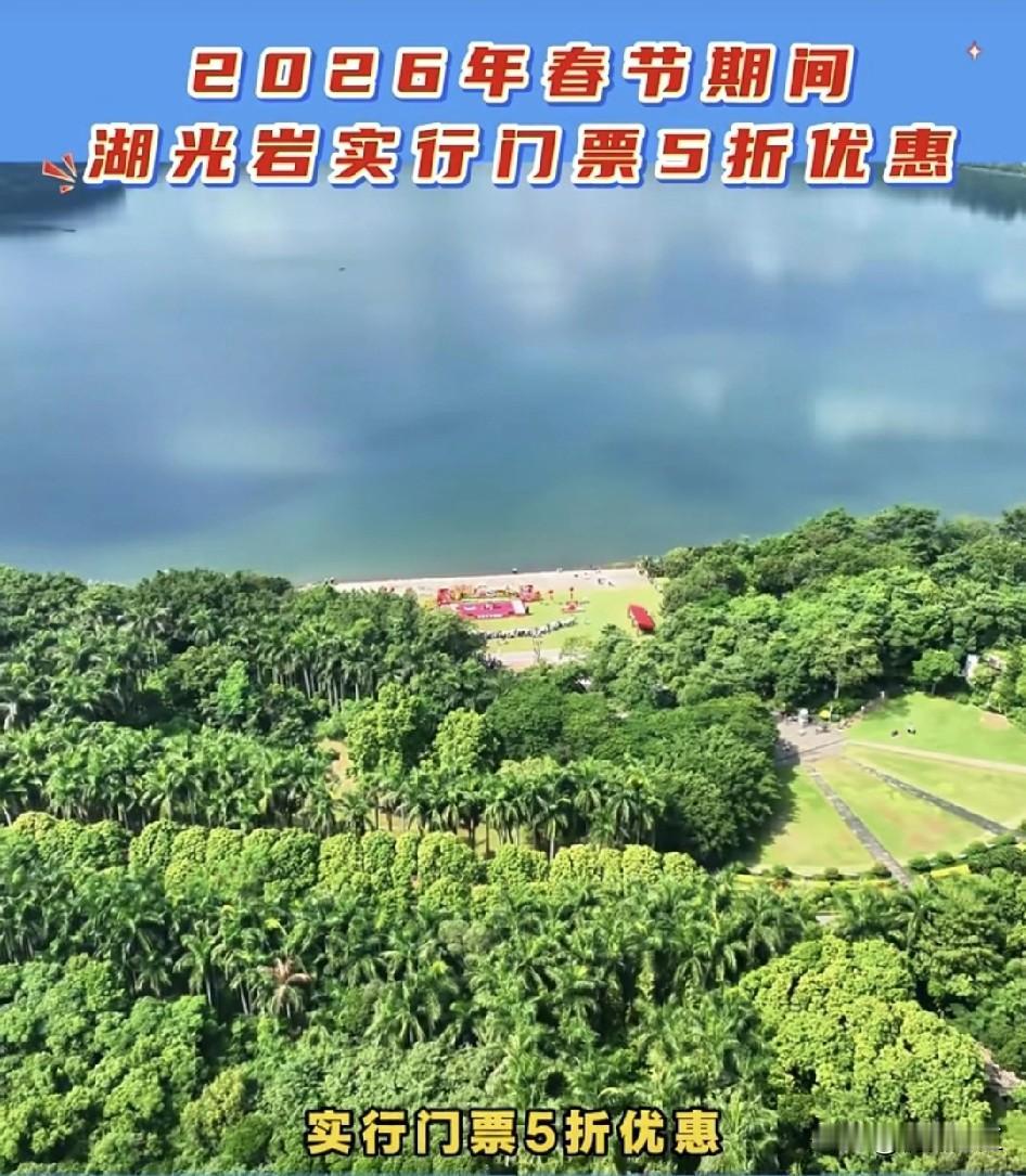 湛江市政府宣布旅游景区出台惠民新政策,在2026年春节期间,湖光岩风景区实行门票5折优惠,其他旅游景区也实行门票收费减免的政策。今年春节假期有9天时间,在春暖花开的美好时节,特别吸引人们外出游玩。作为湛江市知名度高的湖光岩风景区门票实行5折优惠,肯定吸引众多本地居民和外地游客前来打卡。虽然门票打5折,但是客流量肯定增加很多,还有风景区的停车场、餐饮等收入肯定很好,吃喝玩乐一条龙服务,就能带动旅游景区的生意兴隆。所以说湛江市政府这个政策确实很好,值得点赞!