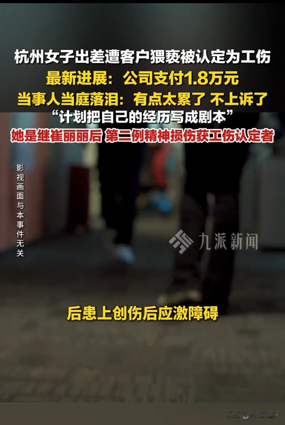 杭州,女子和领导一起出差,应酬后就回去睡觉了,结果客户骗取了女子的房卡,顺利进入房间,由于动静太大,女子中途突然醒来,逃到了卫生间报警,最后客户被抓,女子申请工伤赔偿,因为此事,她产生了创伤后应激障碍,最后法院判了。 女子魏莹是杭州一家猎头公司的一名员工,刚入职不到半年,领导万某比较赏识她的能力,因此就安排她和领导万某于2025年1月13日前往浙江湖州安吉县出差,进一步学习工作方面的知识。 魏莹非常高兴,她觉得这是很好的学习机会,要想出人头地,就必须要多跟着前辈们学习。 当天,他们入住酒店后就约上了客户金某,三人就一起聚会,并喝了一些小酒。 魏莹不胜酒力,吃完饭后就进入房间休息。 领导万某也随后安排好客户后休息了。 可是客户金某有些夜不能寐,想到魏莹的容貌,他就有点想入非非,总想去套套近乎,看看有没有可乘之机。 可是自己明目张胆的去敲门是不可以的,而给对方发信息,对方也没有回,他真像热锅上的蚂蚁,急得不行。 就这么几个小时,如果联系不上魏莹,可怎么办呀,大好的时光就这样浪费了。 因此,他就去前台,假称说是魏莹的朋友,对方喝了酒,他要进去看一看。 前台工作人员看到对方报出房间号,就没有多想,直接把房卡给了对方。 就这样,他顺理成章地、悄悄地进入了房间,他不敢开灯,借着外面的路灯光,发现了床上睡觉的魏莹。 此时他已经按捺不住了,并没有叫醒魏莹、征得她的同意,而是直接开始了不轨行为。 可正在这时,魏莹从睡梦中醒来,发现有人在身上不规矩,于是一脚就将他踢下了床,随后拿起手机就冲进了卫生间,把门反锁。 她进去后,丝毫没有迟疑,直接就报了警。 而这时,客户爬起来也害怕了,直接就逃走了。 民警经过两天的追查,直接将客户金某抓捕归案,最终以强制猥亵罪定罪,对方也对自己的行为供认不讳,虽称自己是喝了酒,但是已成事实,只能接受处罚。 而这边的魏莹害怕极了,又是在外地,又是在大晚上,怎么就有一个大男人跑进房间、爬到自己的床上? 谁遇到这些事情都会害怕。 回来后,魏莹就无法正常上班,产生了创伤后应激障碍。 最后,魏莹提起了工伤赔偿,认为自己在出差期间出现事故,导致自己无法上班,公司必须赔偿。 2026年2月6日,经劳动仲裁裁决,公司赔偿魏莹1.8万元,其中包括了工伤相关停工留薪工资以及后续的医疗费用。 很多人都好奇,像魏莹这样因为出差受到侵害,患上创伤后应激障碍,想要认定工伤到底难在哪里?法院又是怎么考虑的呢? 1、最大的难点就是,这种伤害不是工作中意外受伤,而是被客户故意犯罪造成的,很多人都会觉得,这是个人安全事件,和工作没有直接关系,很难算工伤。 2、创伤后应激障碍属于精神伤害,看不见摸不着,想要证明病情和出差事件有直接关系,举证非常困难。 3、事情发生在晚上酒店休息的时候,不属于正常上班时间,酒店房间也不是办公场所,公司往往会以此为由,拒绝认定工伤。 根据《工伤保险条例》第十四条第一项规定,在工作时间和工作场所内,因工作原因受到事故伤害的,应当认定为工伤。 第十四条第五项也明确,职工因工外出期间,由于工作原因受到伤害,应当认定为工伤。 法院和仲裁机构在审理时认为,魏莹是受公司安排出差,住酒店、晚上休息都是完成工作必不可少的部分,属于工作时间和工作场所的合理延伸。 她之所以受到侵害,完全是因为这次出差,如果不出差,就不会发生这件事,因此可以认定为因工作原因受伤。 同时,精神伤害和身体伤害同样受法律保护,只要与工作相关,就应当纳入工伤范围。 最终,机构依法认定魏莹属于工伤,要求公司支付相应赔偿,既维护了劳动者的合法权益,也对此类案件作出了明确的裁判指引。 对于此事,大家如何看?素材来源于九派新闻