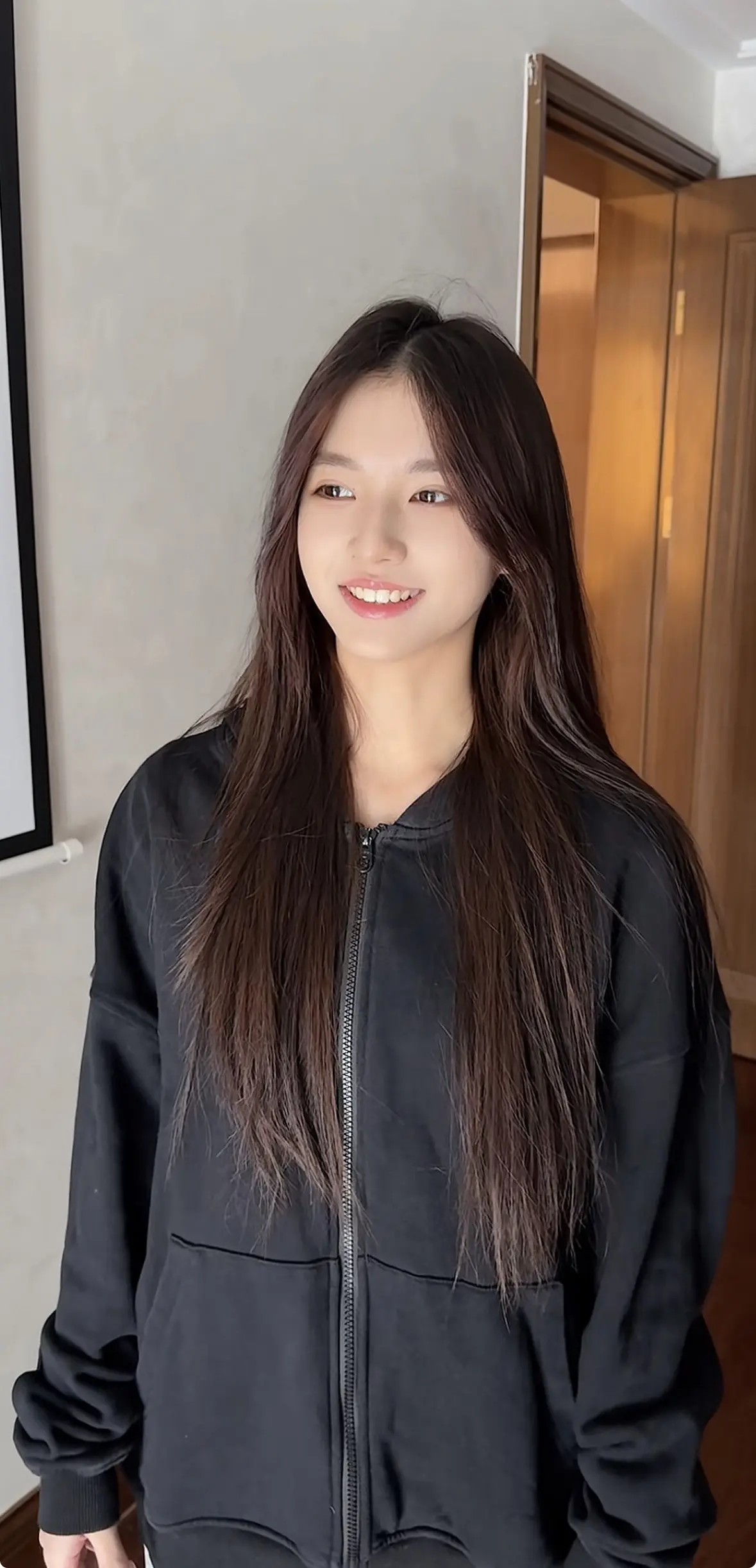 张天爱跟素人合影,胯真的好宽,大宅院似的