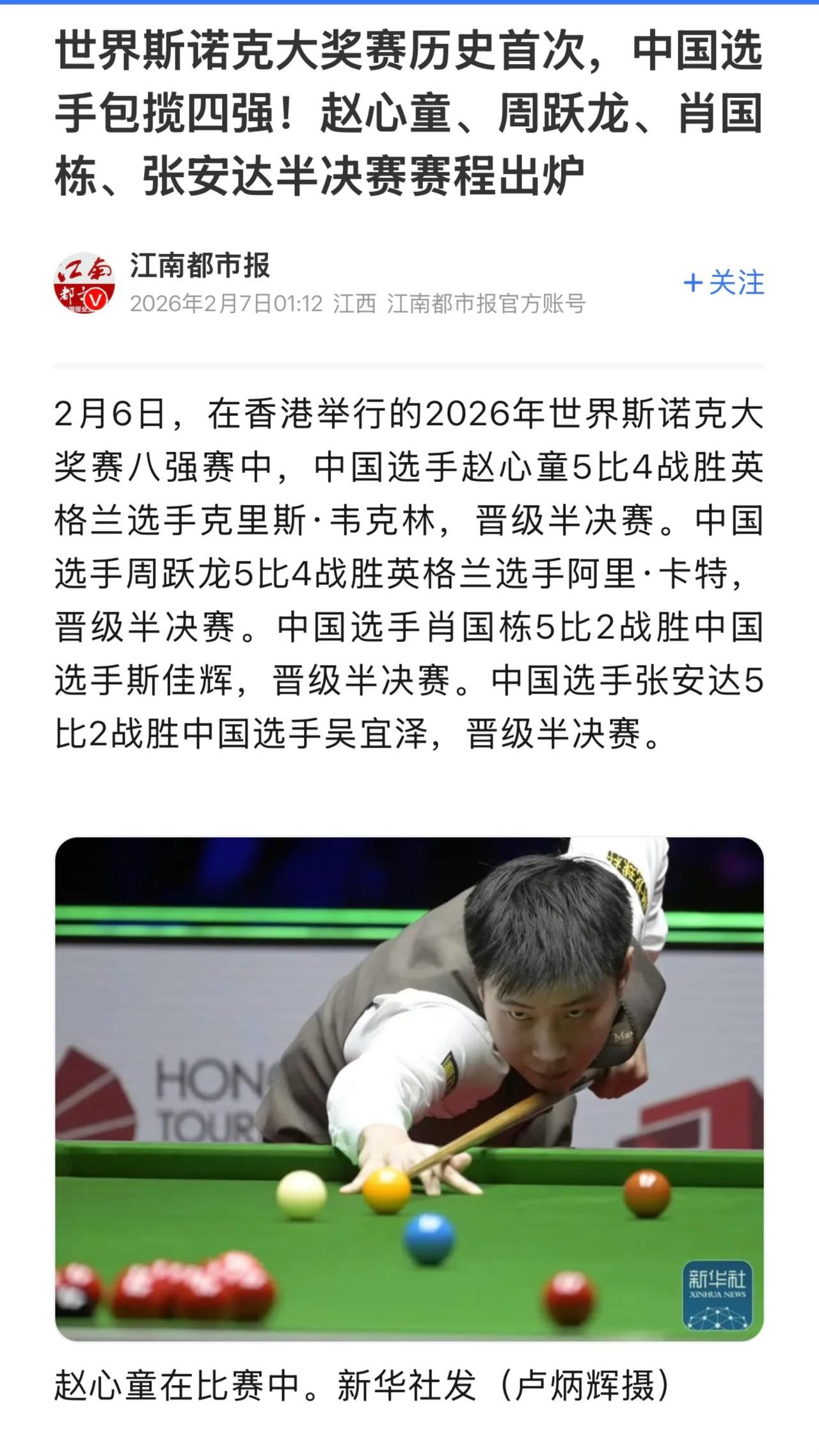 吴宜泽虽未进四强,但奥沙利文盛赞他,预言三年内将成为世界冠军,并称他像现代版史蒂