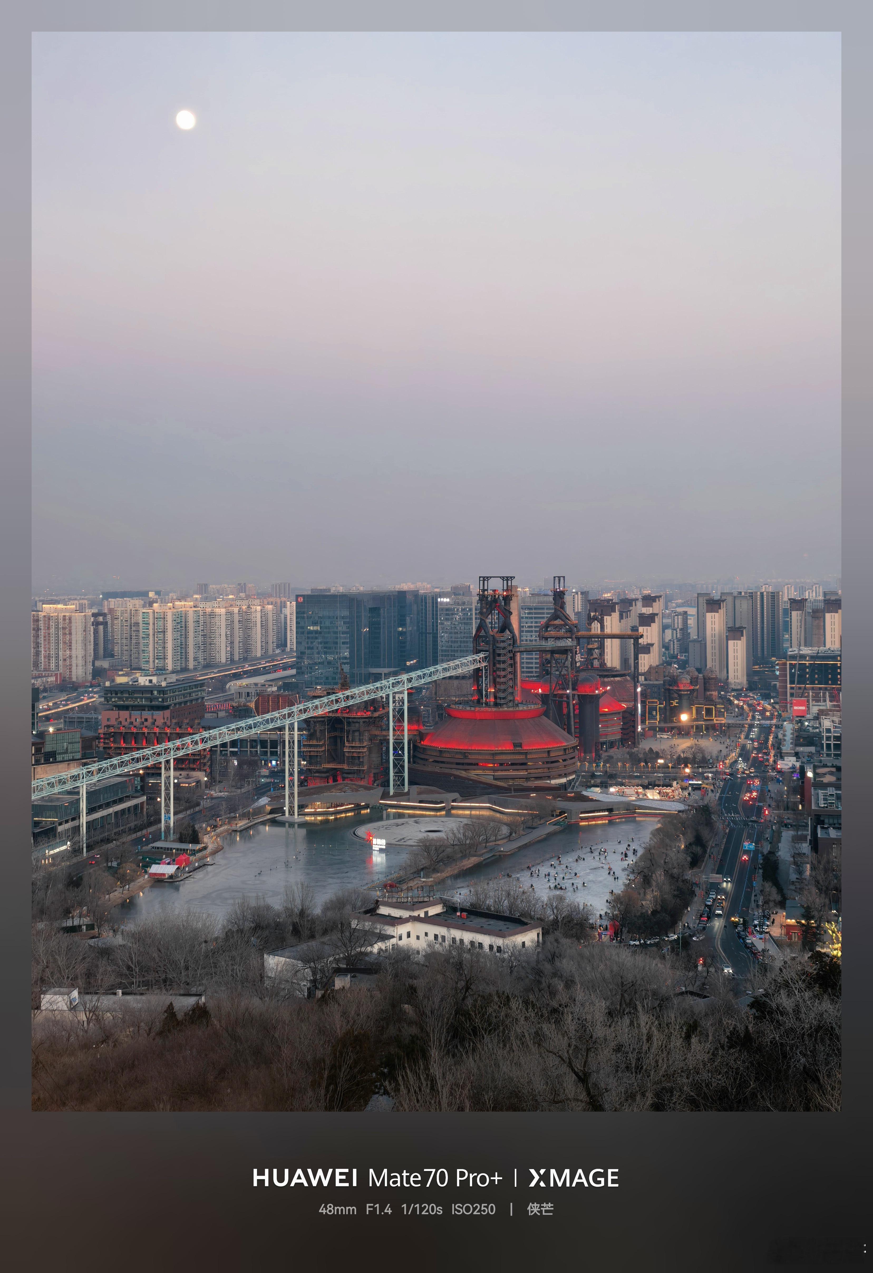 《首钢园的黄昏》 工业遗存与现代光影交织,仿佛时光在此刻静止。高炉的轮廓在暮色中愈发深邃,冰场上的欢声笑语与远处车流的光影交相辉映,诉说着这座城市的变迁与新生。月升云淡,旧日钢花已成今日风景,而我们,正站在历史与未来的交汇处,静静聆听岁月的回响。摄影