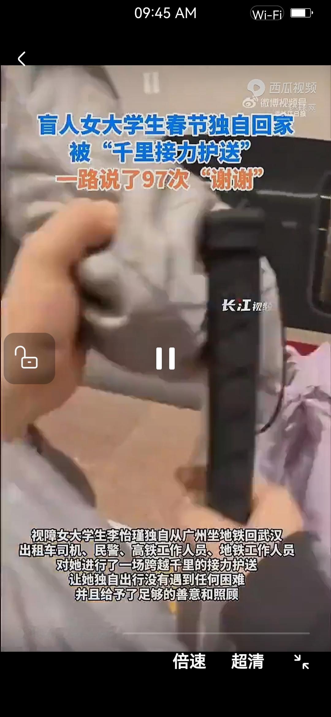 感受世界的温暖! 2月份的广东虽然是南方,但是还是有着深冬的寒意,可是从广东实习地回到武汉老家的李怡瑾这一路上感受到的确是比春天还要温暖的呵护。 她是一名盲人,今年22岁,是一个自幼双目失明的女孩,她身残志坚,是一个自强不息的励志楷模,她通过自己的不懈努力,考上了山东滨州医学院。 2025年8月,她按照学校的安排,到广州中医药大学第一附属医院实习,2026年1月26日,她乘高铁从广州回老家武汉,在这一路的行程中,她得到了至少14个人的接力帮助。 从出租车到高铁,从高铁再到地铁,她被手把手的传递着。从出租车司机,到民警,到高铁工作人员,最后到她父亲的手上,对她全程相互接力,无缝衔接,细心照顾,只为让她顺利回家。 她为什么要坚持去学习中医学,因为她想自食其力,她想挑战自己,她想做一个社会上有用的人,她想也为别人提供帮助,他想回报那些帮助她的热心人。 这就是社会的爱,社会的温暖,这就是我们大家庭应有的温度,是每个人的恻隐之心,是善意的传递和感染,是真正的大爱。 她的人生是不幸的,双目失明,让她一生都见不到光明; 她是坚强的,努力的,不放弃希望,追求个人的价值的; 她一定是感动的,温暖的,幸福的,她一路上说了97个谢谢; 谢谢每一个施爱的人,谢谢每一个努力的人,谢谢每一个坚持的人坚强的人! 请伸出你的手,让我们的社会更加温暖!