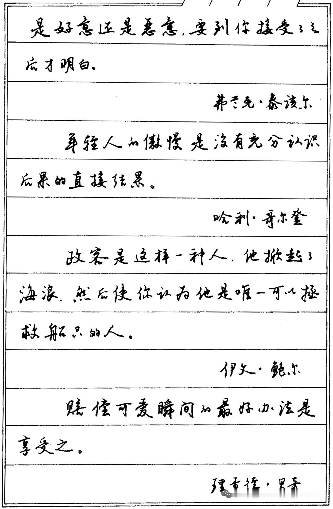 “问题只是带刺的机会” “年轻人的傲慢是没有充分认识后的直接结果” “是好意还是恶意要到你接受之后才能明白”