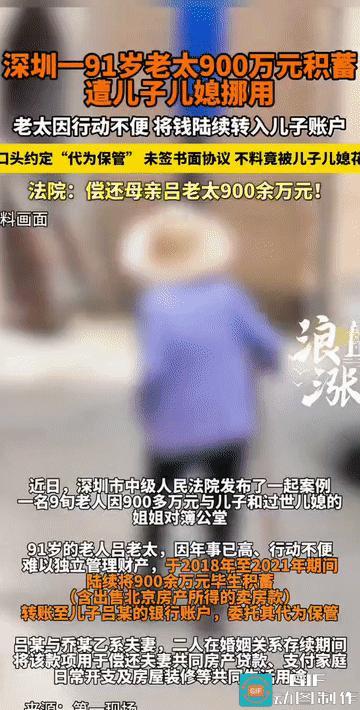 “养儿真的防老吗?”广东深圳,一位91岁高龄的老太因年事已高、行动不便,便将自己900万毕生积蓄交给儿子保管,没想到的是这钱转眼间就被儿子儿媳花光,最终因为这位母亲为安度晚年而托付的财产,让一家人对簿公堂! 来源:【浪涨新闻】 2018年至2021年期间,吕老太将出售北京房产及其他积蓄共计900余万元陆续转到儿子吕某账户中! 法庭调查显示,吕某与其妻子乔某乙在婚姻存续期间,将这些钱款用于偿还夫妻共同房产贷款、支付家庭日常开支及房屋装修等共同生活用途! 2022年7月,吕老太的儿媳乔某乙因病去世,留下了一份遗嘱。儿媳突然离世带来的继承问题让这起家庭财产纠纷变得复杂! 这份遗嘱指定将名下房产50%产权份额、300余万元银行存款由姐姐乔某甲继承,其余财产归丈夫吕某! 2024年,当吕老太发现委托儿子保管的900余万元已被挪用时,她认为这笔款项是给儿子的借款,于是提起了诉讼! 吕老太主张该款项为借款,要求儿子全额偿还,同时要求乔某甲在继承乔某乙遗产范围内承担连带清偿责任! 乔某甲则辩称,这笔款项属于吕老太对儿子的赠与,自己无需承担责任! 法院审理后作出明确认定:该款项没有借据和借贷合意证明,不构成借款关系;而双方都否认款项系赠与,将如此大额的养老款推定为赠与有违公平原则! 保管合同与夫妻共同债务的判定是本案的法律逻辑核心。法院结合老人客观情况、母子关系及资金用途,认定双方存在委托保管的合意,成立保管合同关系! 由于款项实际被用于吕某夫妻共同生活,法院认定这属于夫妻共同债务! 最终的判决结果是,法院判决吕某需偿还母亲吕老太900余万元;乔某甲在继承乔某乙遗产的范围内,承担对应的清偿责任! 那么,老年人该如何守护财产安全呢? 专业机构介入:对重大财产事项可咨询专业律师或公证机构,尤其是涉及大额资金转移时。 明确法律形式:即使是与子女间的财产往来,最好以书面形式明确法律关系,避免日后产生纠纷。 保留证据:妥善保管转账记录、聊天记录等证据,以便在需要时维护自己的权益。 分散风险:不将所有财产集中在一人或一处,可考虑多元化管理方式。 定期关注:老年人即使委托他人管理财产,也应定期关注财产状况,确保自己了解资金流向。 当亲人间的信托不再可靠,制度化的保障或许是老年人财产的最后一道防线!