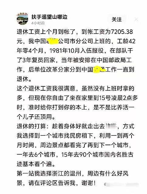 干了一辈子,退休金到手7205元,算上中等偏上了吧?以后可以过无忧无虑的富裕生活了。