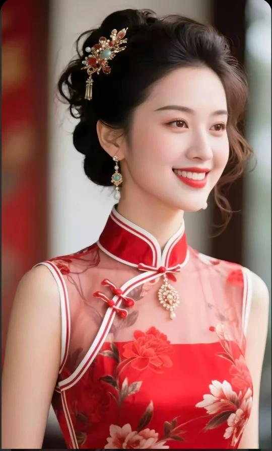旗袍雅致韵味生, 嫣然一笑显风情。