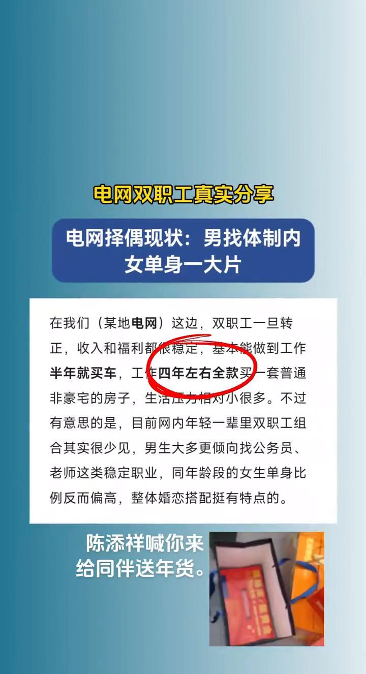 电网员工,是中国最容易全款买房,也最难结婚的一群人。 工作半年买车,四年全款拿下首套房。 生活没压力,婚恋压力却拉满。 男员工找对象,清一色瞄准公务员、教师。 同单位的女同事,反而单着。 “双职工组合”在电网内部几乎绝迹。 这不是个人选择,是整个社会把“稳定”焊成了婚恋市场的硬通货。 经济越波动,体制内的标签就越烫金。 婚姻,从情感联盟变成了风险对冲。 现在年轻人找对象,算的不是爱,是抗风险系数。 两个体制内,等于上了双保险。 一线城市尤其明显,有户口有编制,却挤不进狭窄的社交圈。 电网女的困境,是时代给“体面人”设的局。 当稳定成为最高嫁妆,心动就成了奢侈品。 我们精心计算未来,却唯独算漏了人心。
